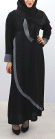 Robe (Abaya) manches longues avec motifs et fermeture devant - Couleur Noir - REF. 29787 (28.00 €)