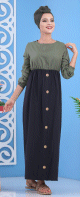 Robe longue bicolore à boutons pour femme - Couleur kaki - REF. 30381 (25.00 €)