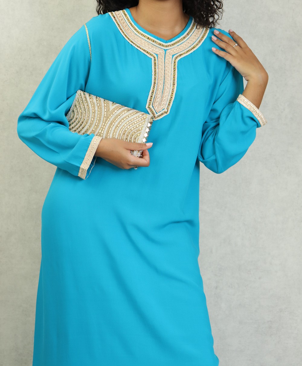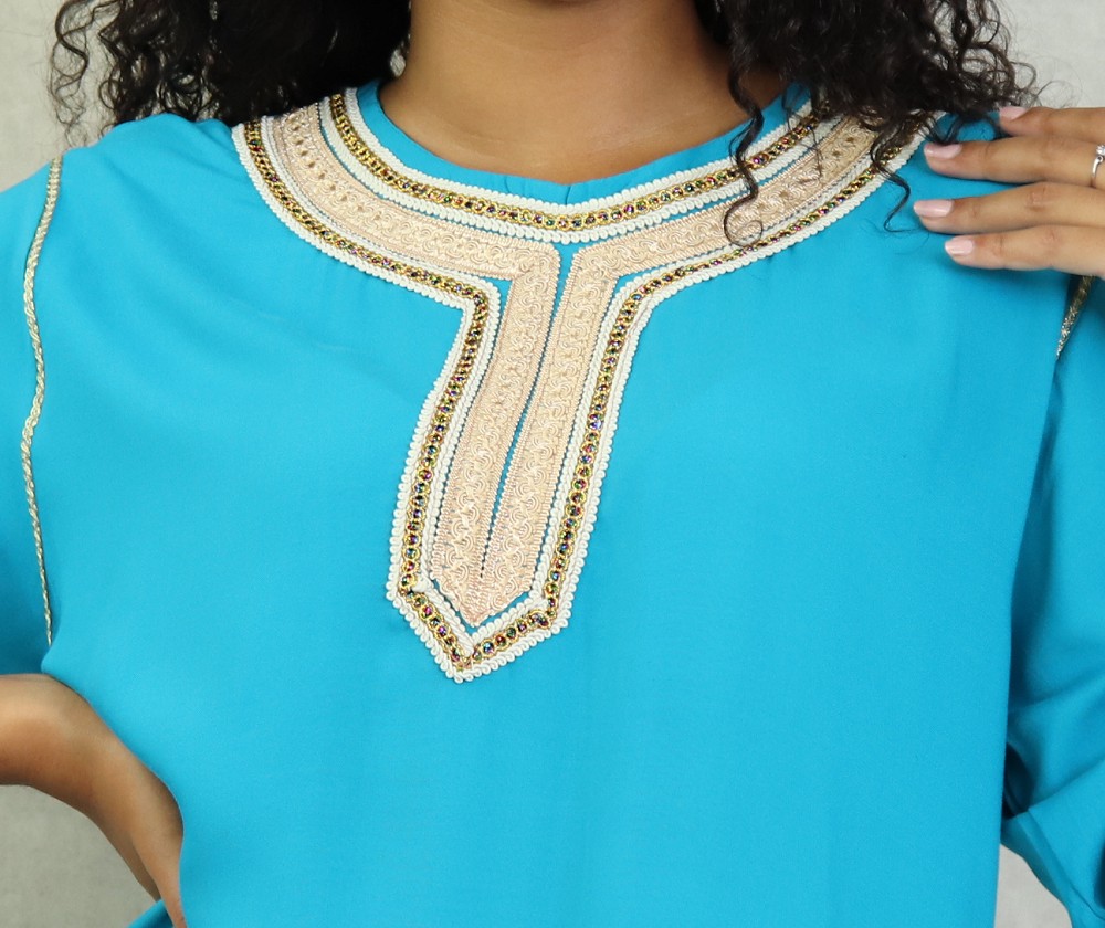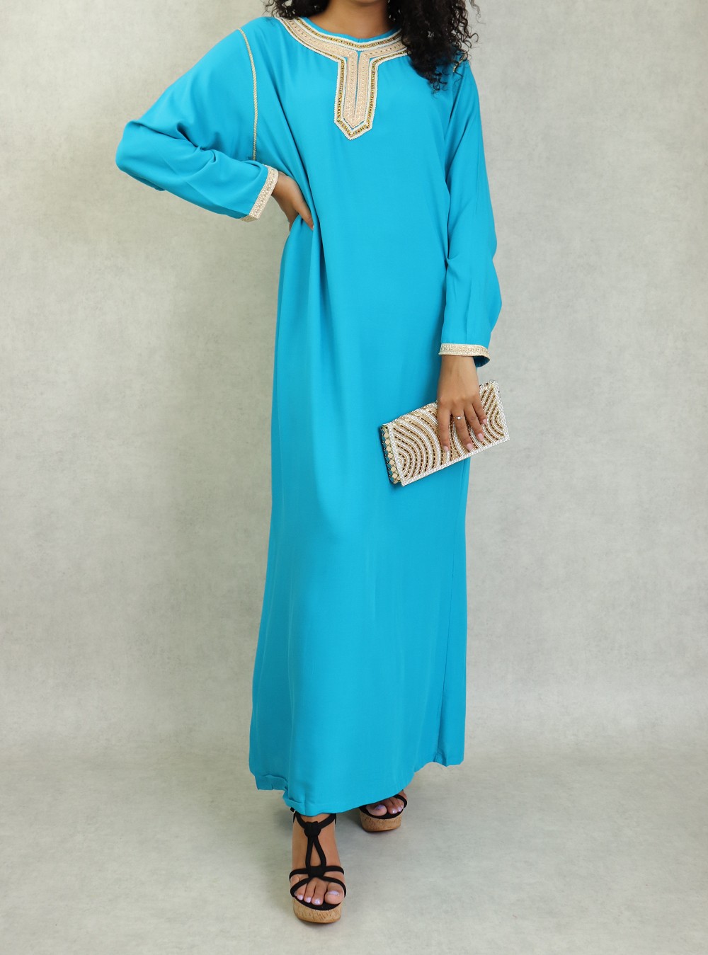 Robe orientale longue brodée manches courtes fluide et décontractée pour femme - Couleur bleu roi - REF. 33407 (29.00 €)