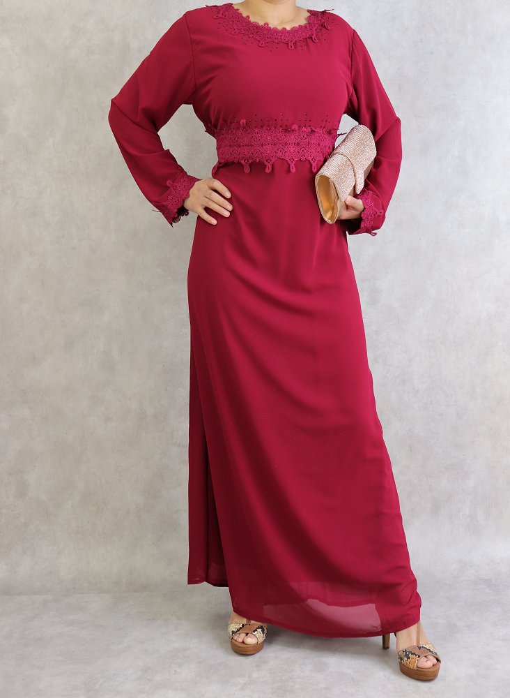 Robe très longue avec broderies et strass - Couleur Framboise Vetement & Accessoire