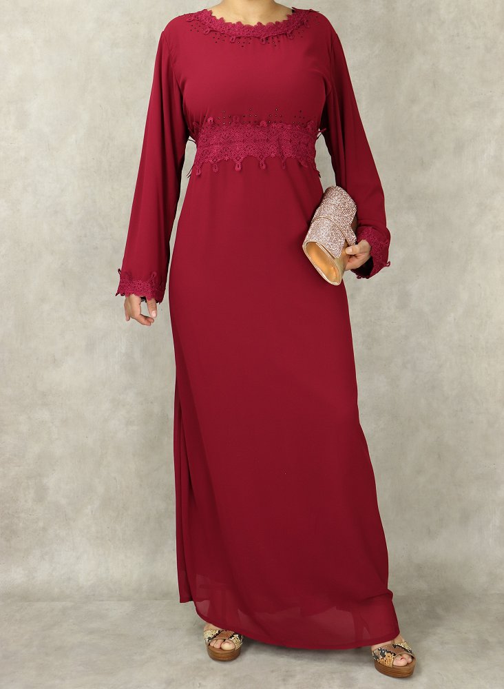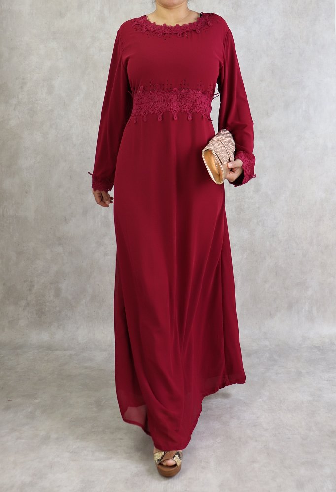 Robe longue brodée pour femme musulmane (Tenue Hijab classique) - Couleur bordeaux - REF. 36601 (35.00 €)
