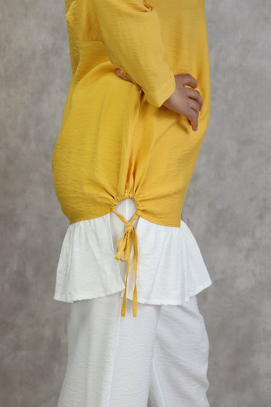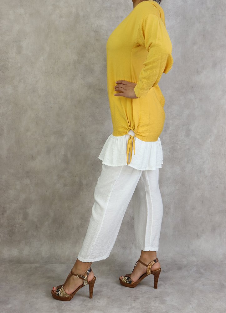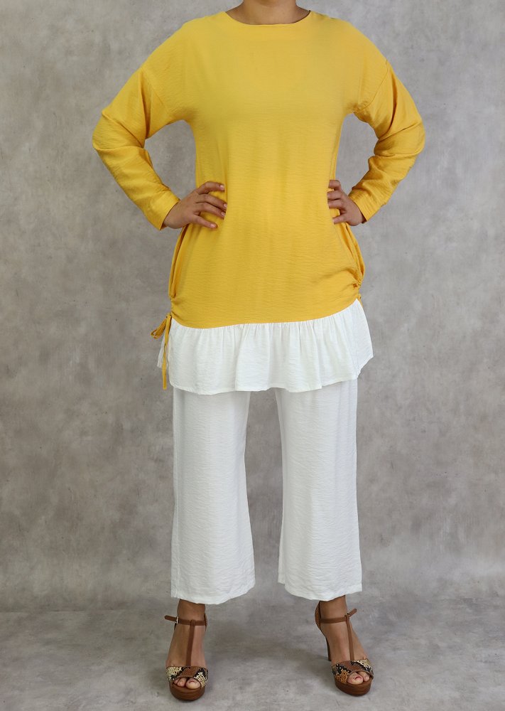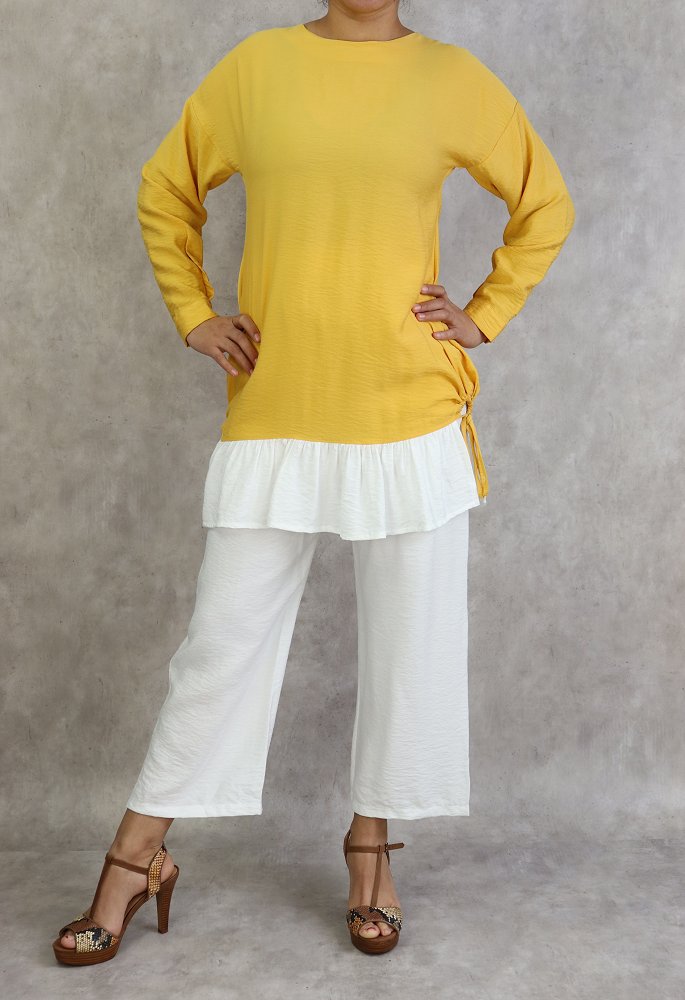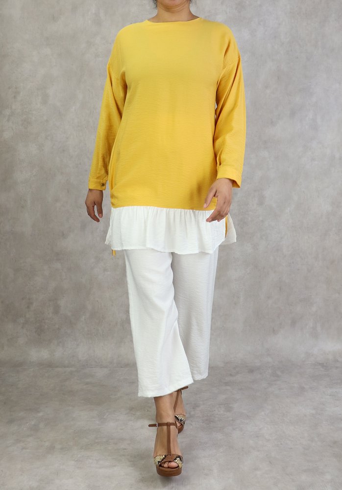Ensemble deux pieces bicolore tunique et pantalon couleur Jaune et Blanc