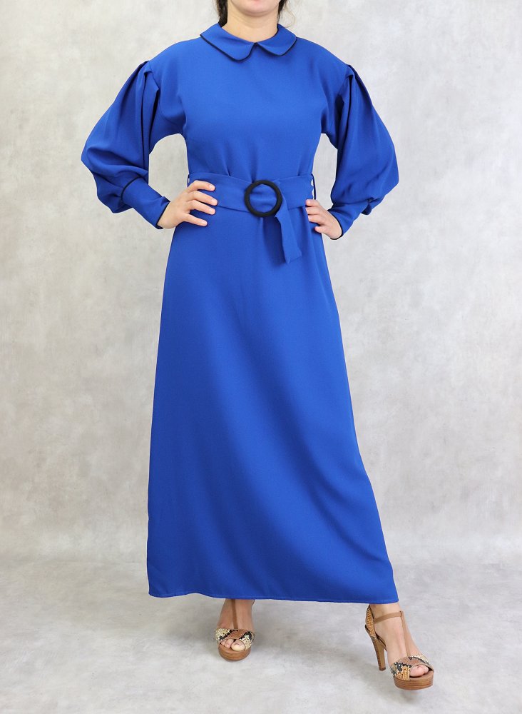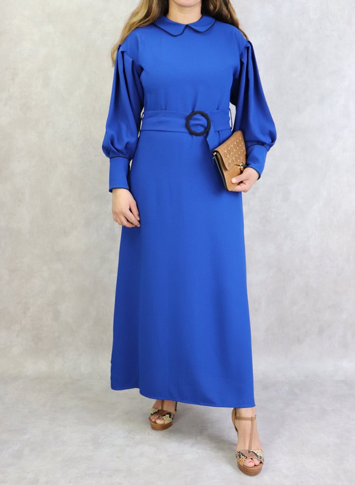 Robe longe ceinturée boucle écaille - Couleur Bleu roi Vetement & Accessoire