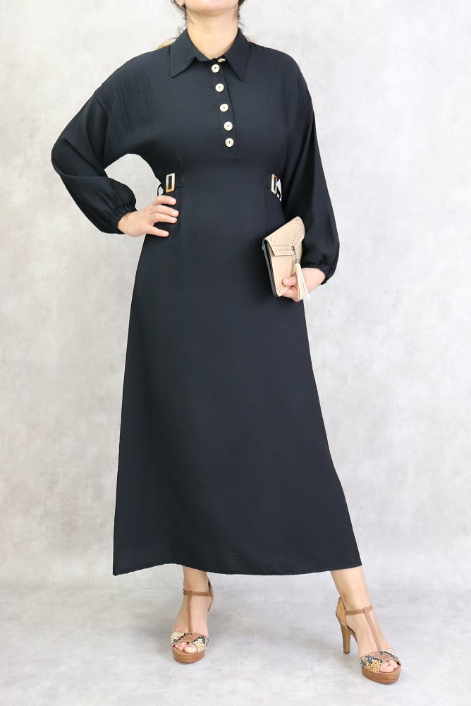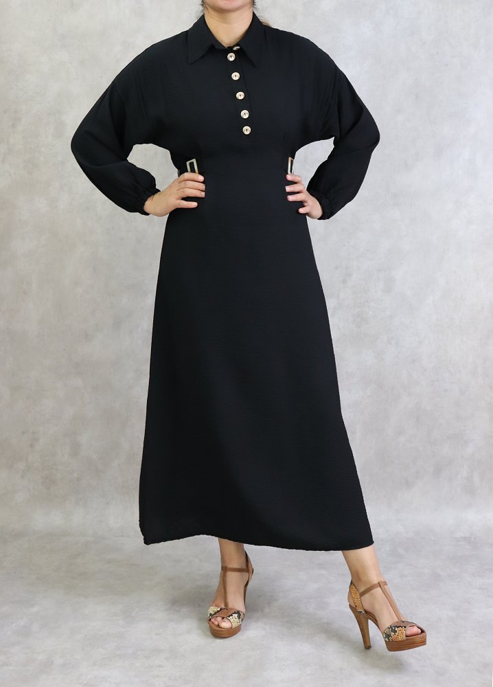 Robe longue casual col chemise pour femme - Couleur Noir Vetement & Accessoire