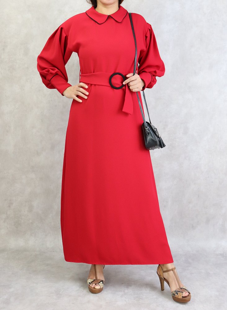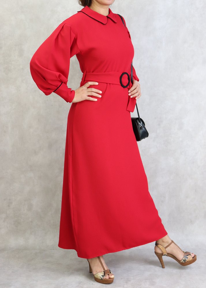 Robe longe ceinturée boucle écaille - Couleur Rouge Vetement & Accessoire