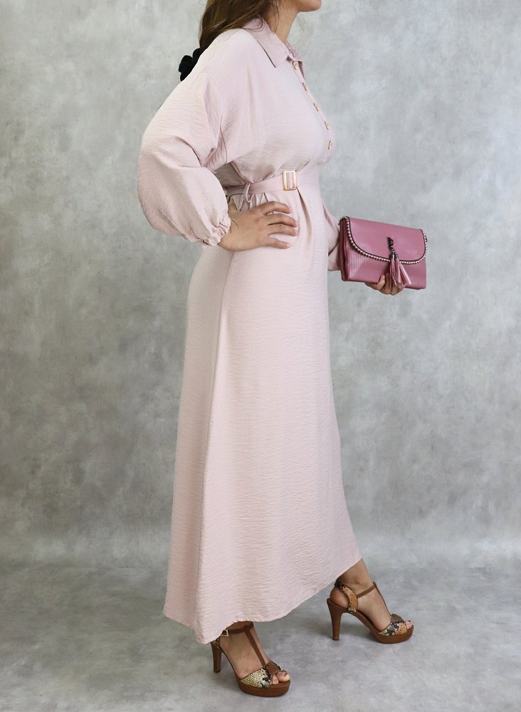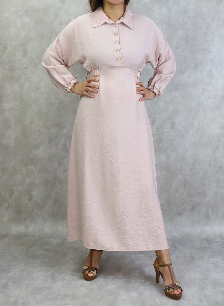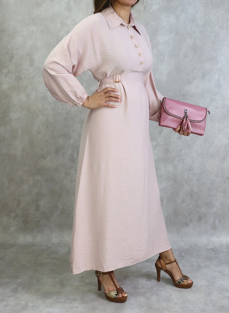 Robe longue casual col chemise pour femmes - Couleur Vieux rose Vetement & Accessoire