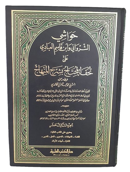 ﻫﺬﺍ ﺍﻟﻜﺘﺎﺏ ﺣﺎﺷﻴﺘﺎﻥ، ﺣﺎﺷﻴﺔ ﺍﻟﻌﻼﻣﺔ ﺍﻟﺸﻴﺦ ﻋﺒﺪ ﺍﻟﺤﻤﻴﺪ ﺍﻟﺸﺮﻭﺍﻧﻲ ﻧﺰﻳﻞ ﻣﻜﺔ ﺍﻟﻤﺸﺮﻓﺔ ﺭﺣﻤﻪ ﺍﻟﻠﻪ، ﻭﺣﺎﺷﻴﺔ ﺍﻟﻌﻼﻣﺔ ﺍﻟﺸﻴﺦ ﺍﺣﻤﺪ ﺑﻦ ﻗﺎﺳﻢ ﺍﻟﻌﺒﺎﺩي ﺭﺣﻤﻪ ﺍﻟﻠﻪ ﻋﻠﻰ ﺷﺮﺡ ﺧﺎﺗﻤﺔ ﺍﻟﻤﺤﻘﻘﻴﻦ ﻭﺍﻟﻤﺪﻗﻘﻴﻦ ﺍﻟﻌﻼﻣﺔ ﺍﻟﺸﻴﺦ ﺷﻬﺎﺏ ﺍﻟﺪﻳﻦ ﺍﺣﻤﺪ ﺑﻦ ﺣﺠﺮ ﺭﺿﻲ ﺍﻟﻠﻪ ﻋﻨﻪ ﻭﺃﺭﺿﺎﻩ ، ﻋﻠﻰ ﻣﺘﻦ ﺍﻟﻤﻨﻬﺎﺝ ﻟﻺﻣﺎﻡ ﺍﻟﻜﺒﻴﺮ ﻭﺍﻟﻌﻠﻢ ﺍﻟﺬﻱ ﻳﻐﺘﺮﻑ ﻣﻦ ﺑﺤﺮﻩ ﺍﻟﻤﺘﺄﺧﺮﻭﻥ ، ﻭﻫﻮ ﺍﻟﺤﺠﺔ ﺍﻹﻣﺎﻡ ﺃﺑﻮ ﺯﻛﺮﻳﺎ ﻣﺤﻴﻲ ﺍﻟﺪﻳﻦ ﻳﺤﻴﻰ ﺑﻦ ﺷﺮﻑ ﺍﻟﻨﻮﻭﻱ ، ﻓﻲ ﺍﻟﻔﻘﻪ ﻋﻠﻰ ﻣﺬﻫﺐ ﺍﻹﻣﺎﻡ ﺍﻟﺸﺎﻓﻌﻲ ﺭﺿﻲ ﺍﻟﻠﻪ ﻋﻦ ﺍﻟﺠﻤﻴﻊ ﻭﺃﺳﻜﻨﻬﻢ ﻣﻦ ﺩﺍﺭ ﻓﻀﻠﻪ ﻓﻲ ﺍﻟﻤﺤﻞ ﺍﻟﺮﻓﻴﻊ.
