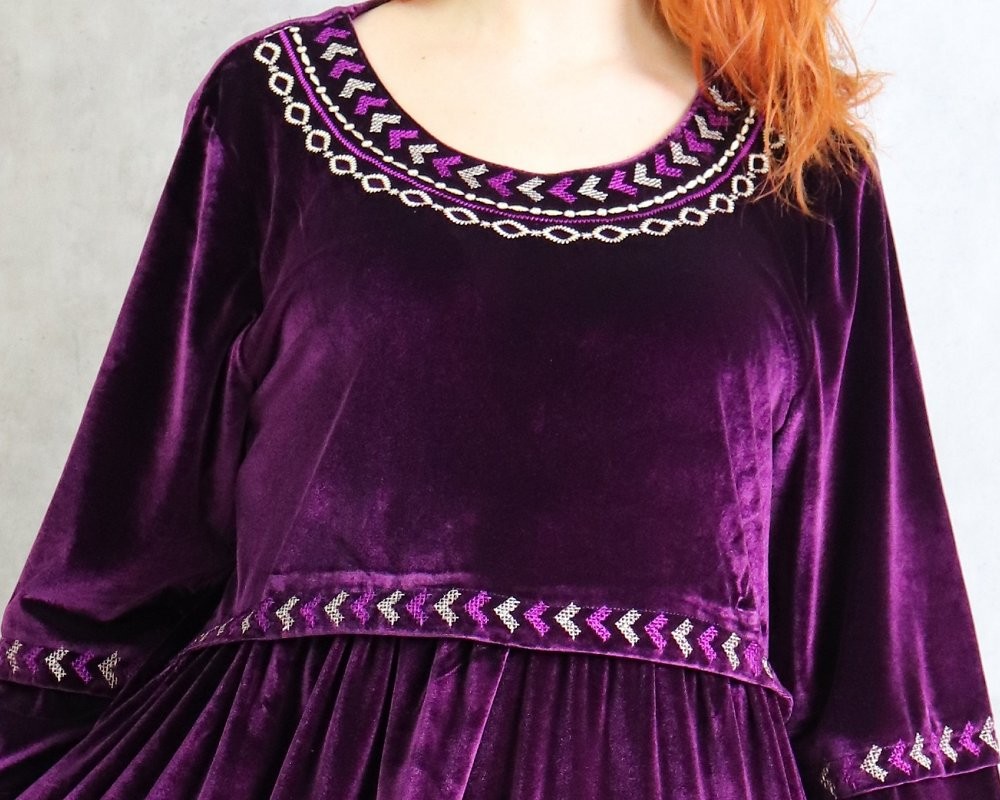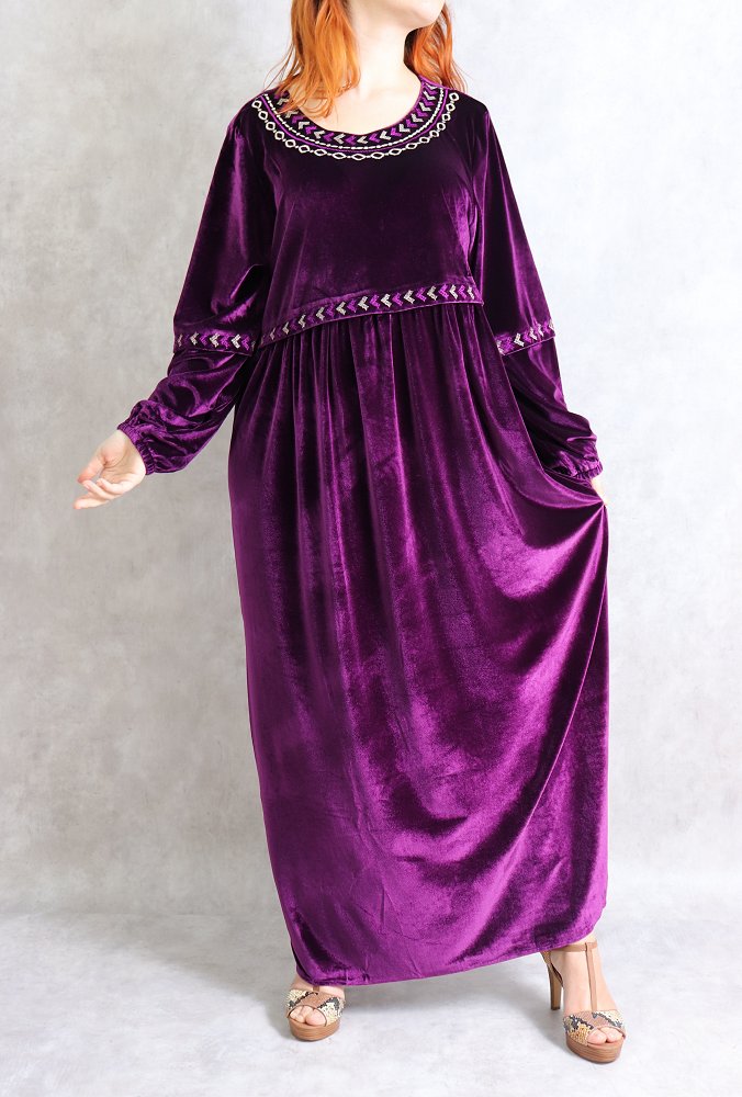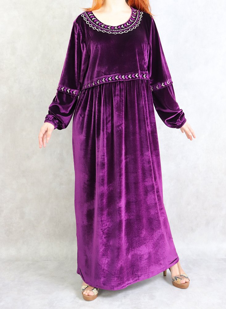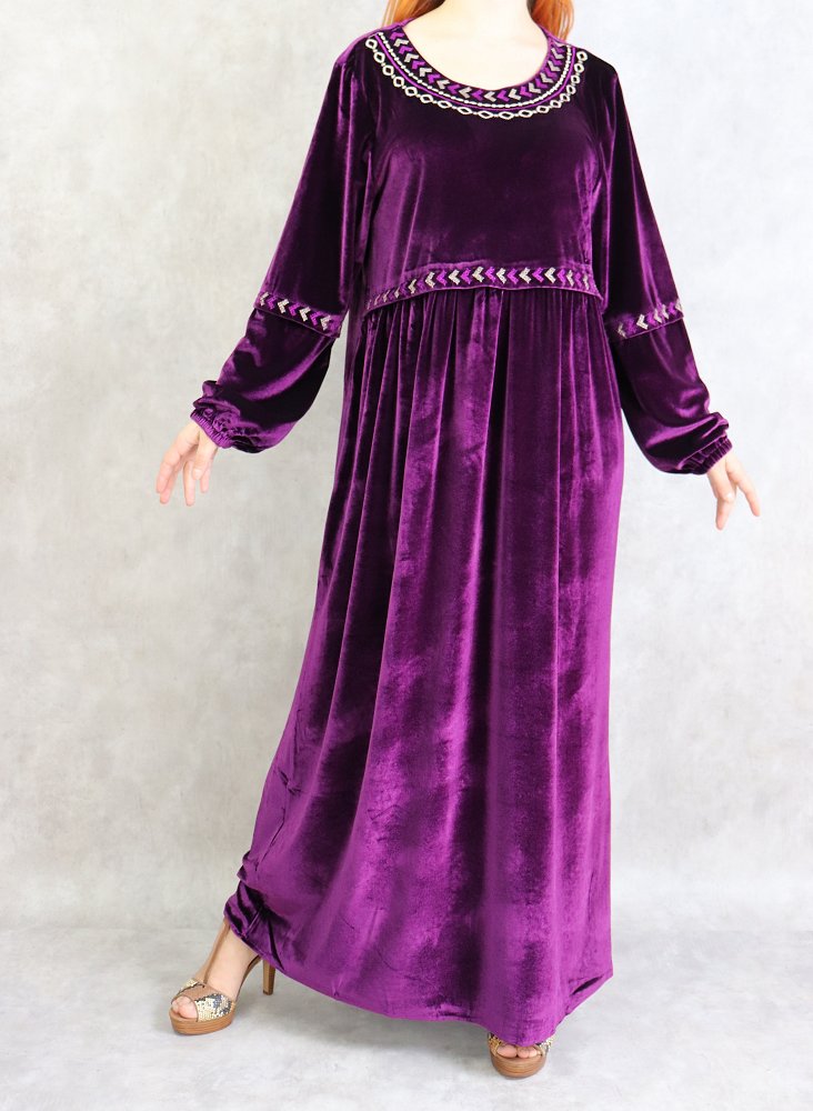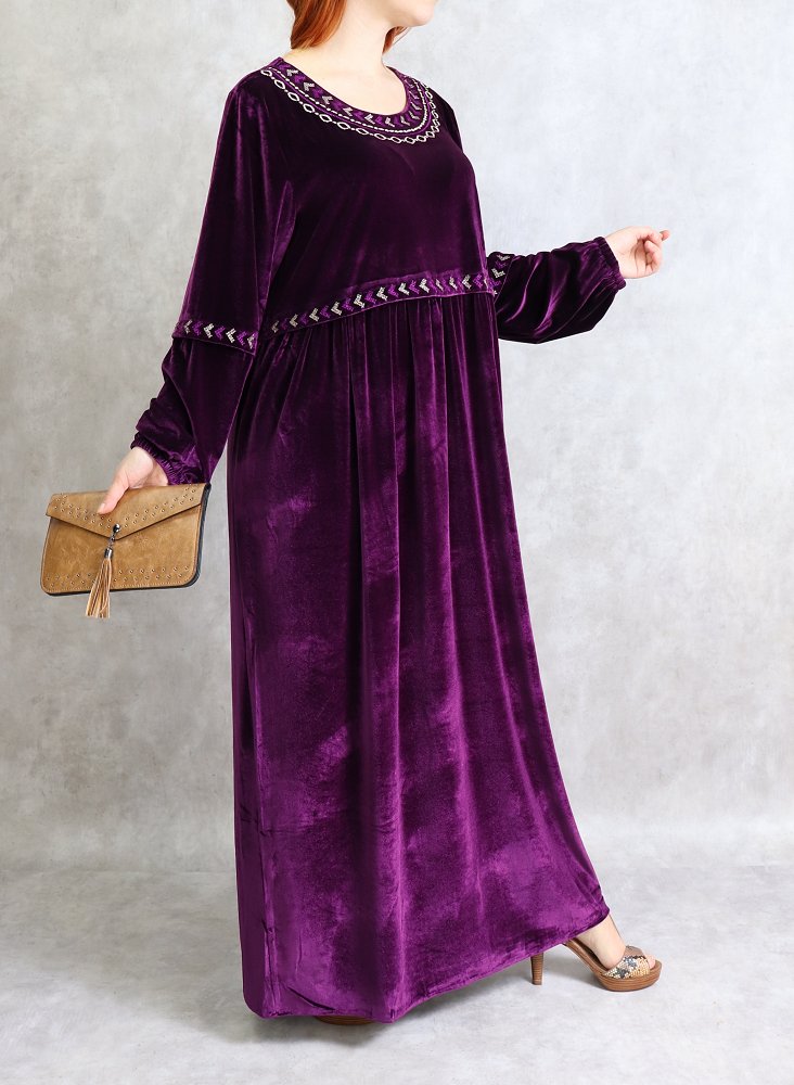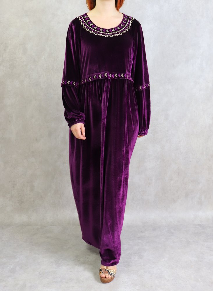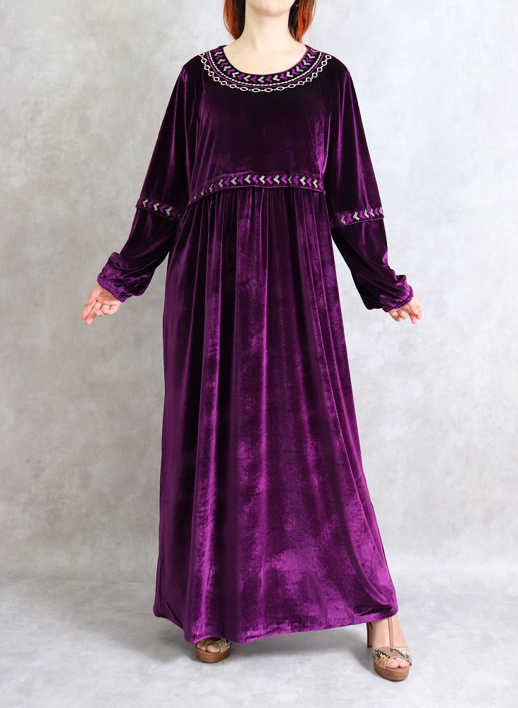 Robe longue en velours avec broderies - Couleur Violet Vetement & Accessoire