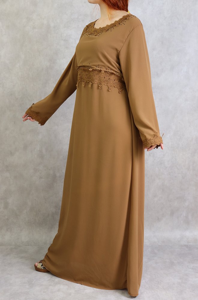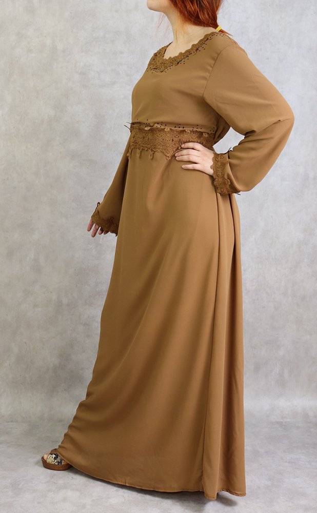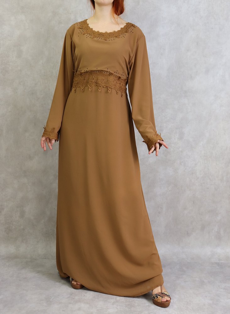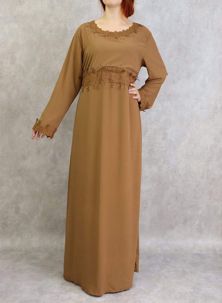 Robe maxi-longue avec broderies et strass - Couleur Camel Vetement & Accessoire