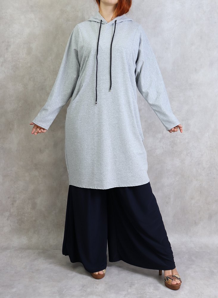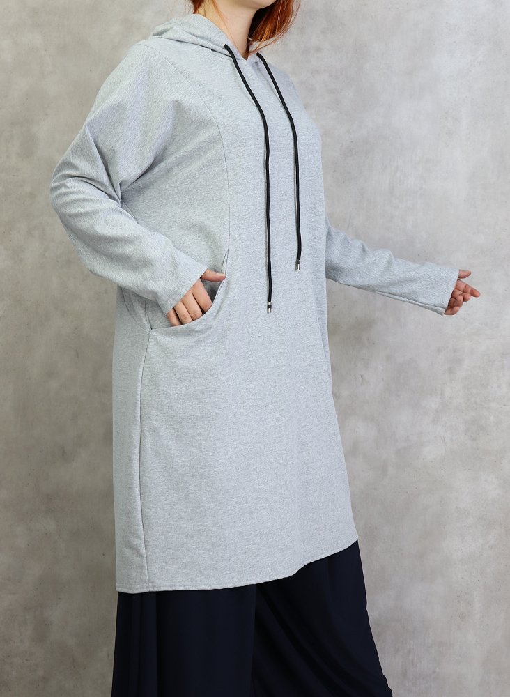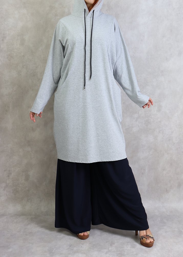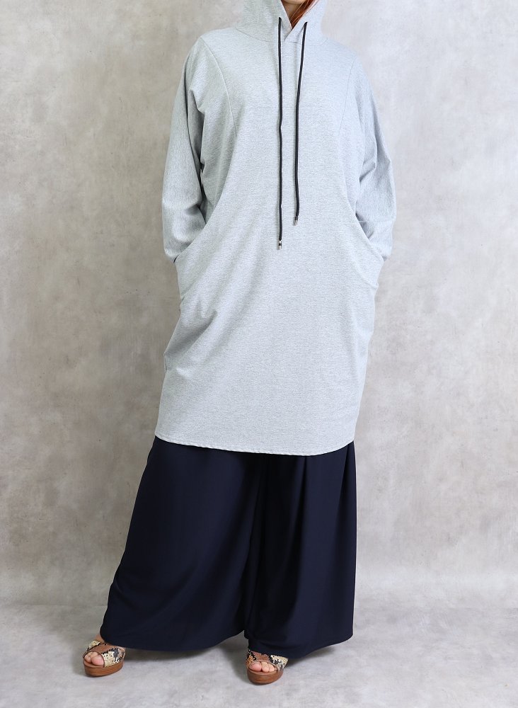 Sweat long en coton de couleur unie avec deux poche plaquée. Coupe classique, manches longues. Capuche munie d'un cordon de serrage sur le col.