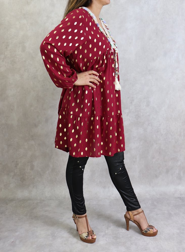 Robe style oriental pour la maison et l'été (Robes extra-large et grande taille pour femme) - Couleur Motifs Bordeaux - REF. 36116 (14.90 €)
