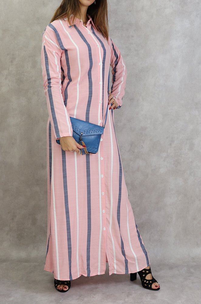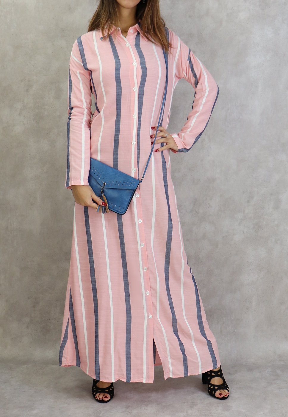 Robe chemise d'été longue à rayures (Vetement hijab chic pour femme) - Multi couleurs - REF. 32886 (25.00 €)