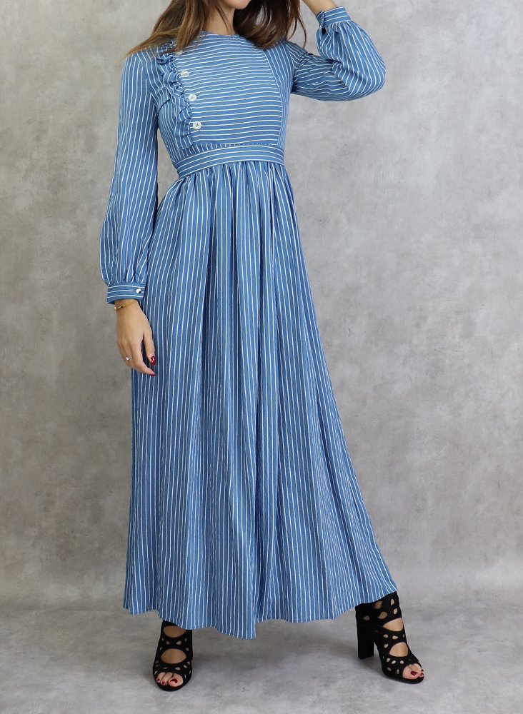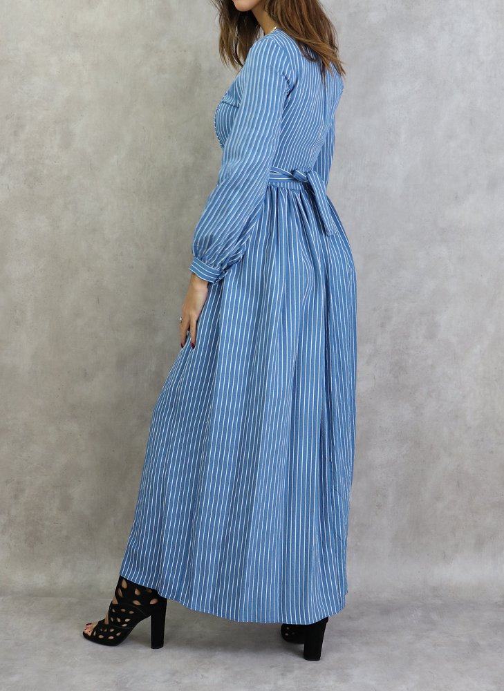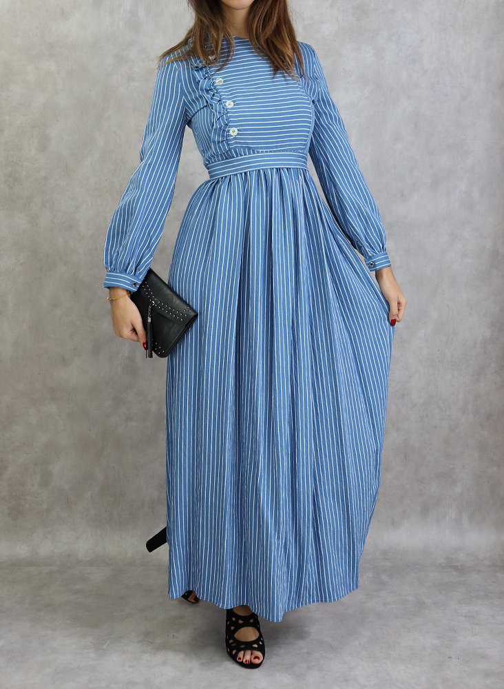 Robe casual longue évasée à rayures blanches pour femme - Couleur bleu Vetement & Accessoire