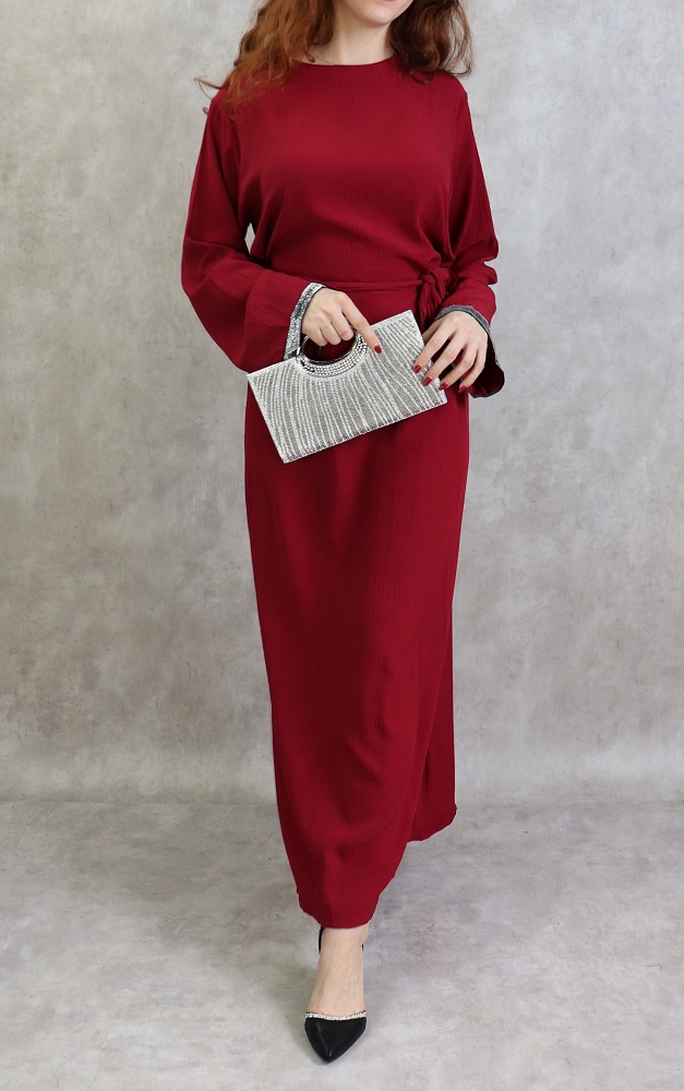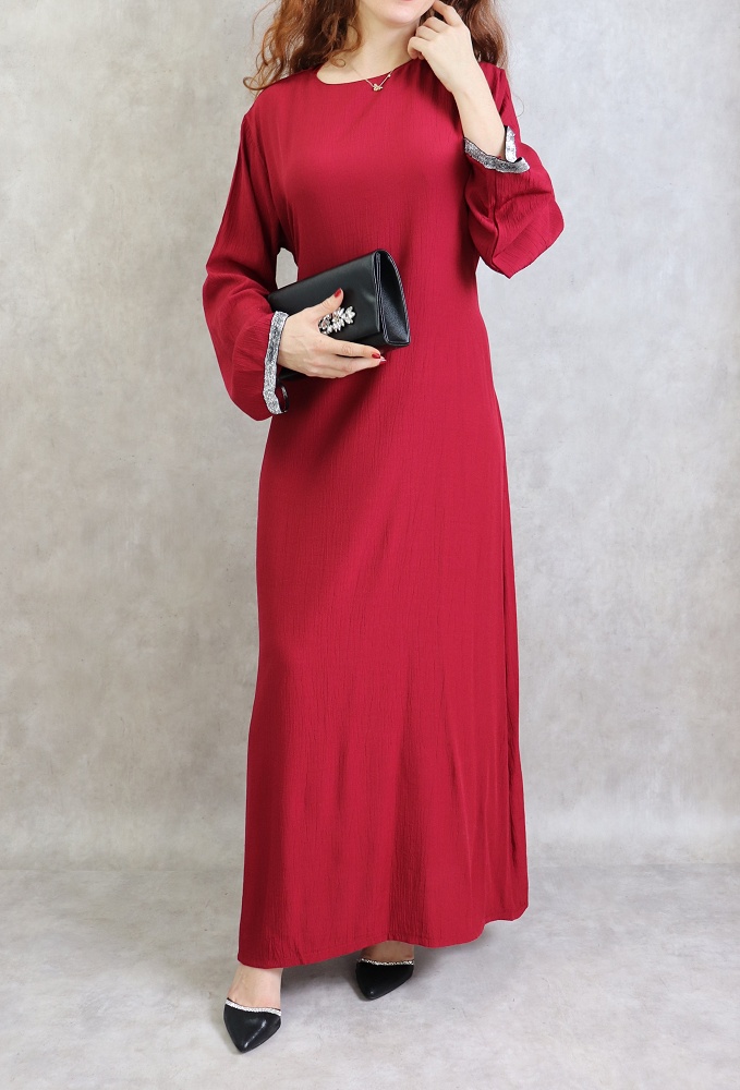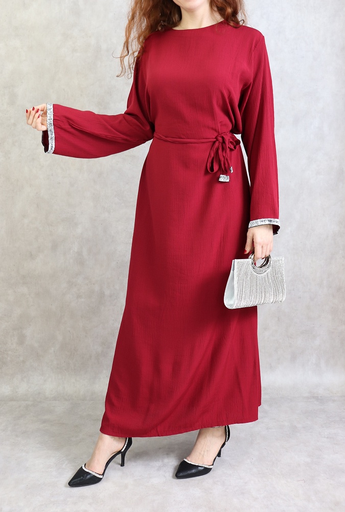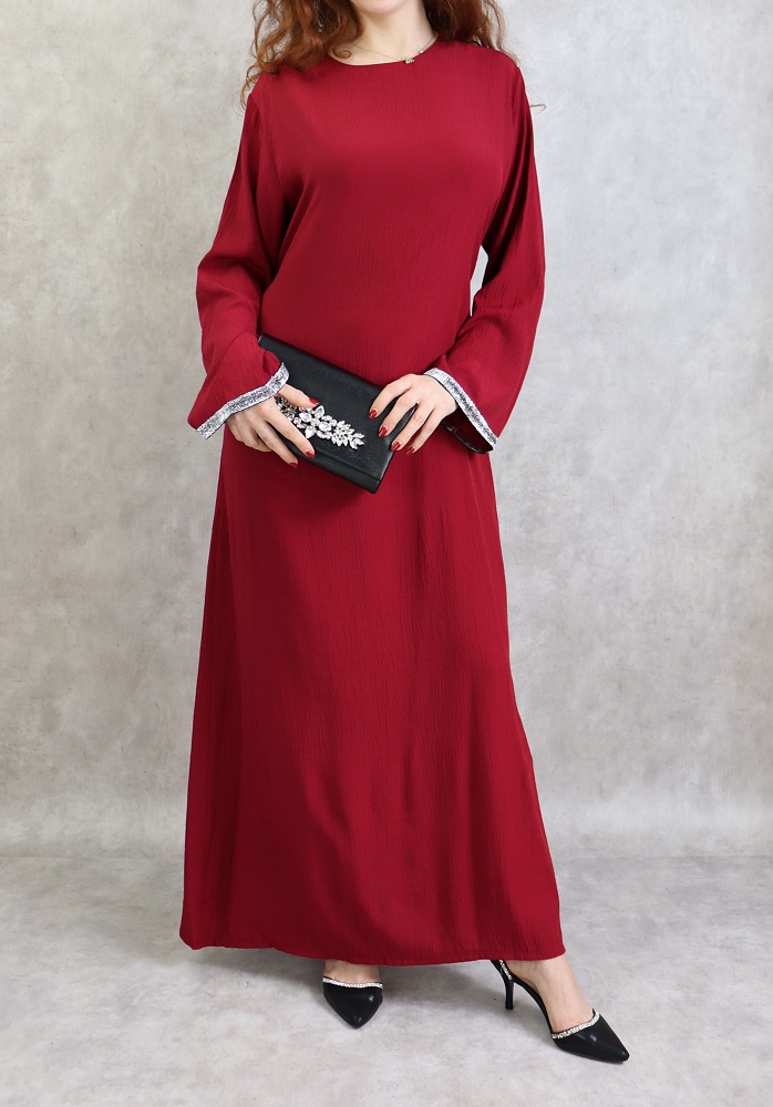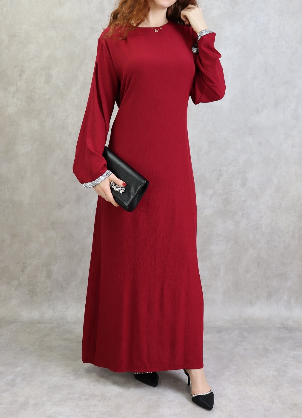 Robe longue avec strass de couleur bordeaux Vetement & Accessoire