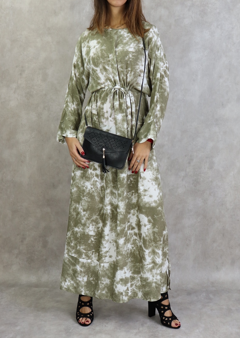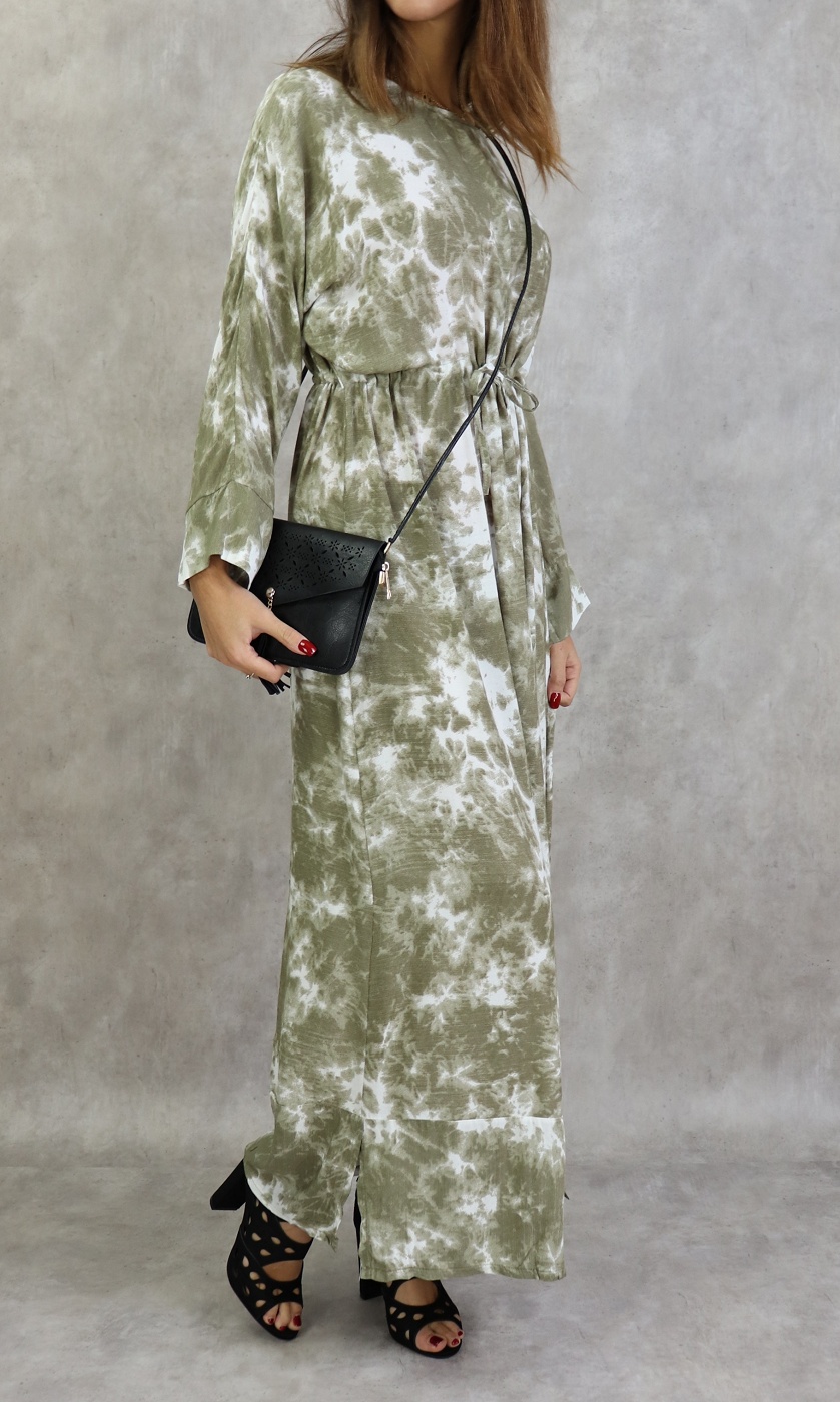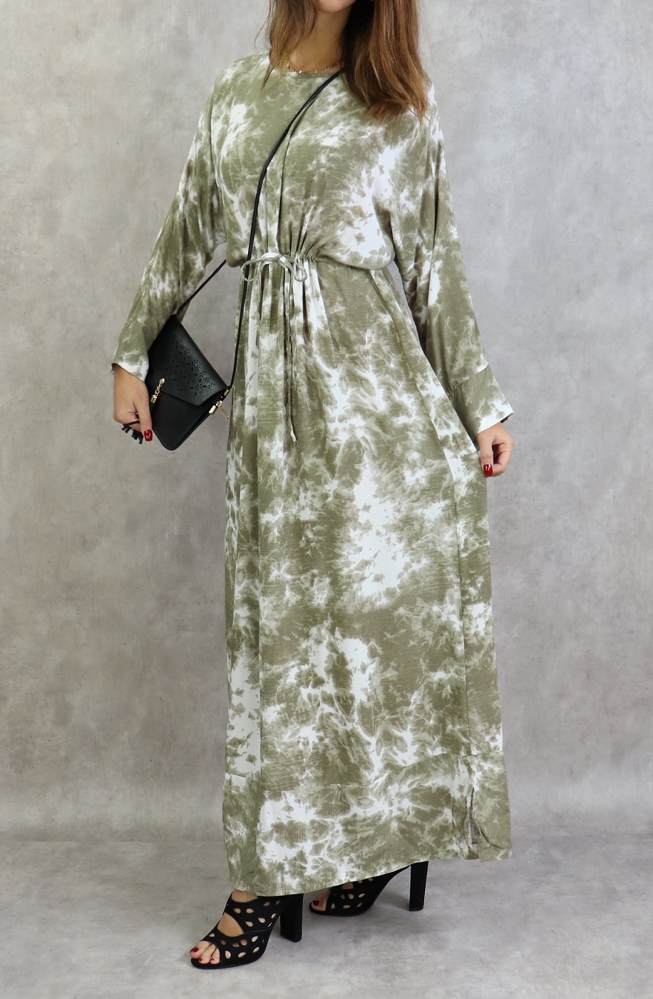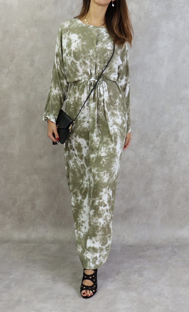 Robe longue en coton à imprimés délavés - Couleur kaki Vetement & Accessoire