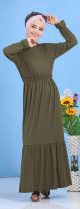 Robe longue décontractée effet strié pour femme - Couleur kaki - REF. 30365 (25.00 €)