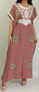 Robe orientale longue fleurie imprimée arabesque et brodée pour femme - Couleur Rouge - REF. 30948 (26.00 €)