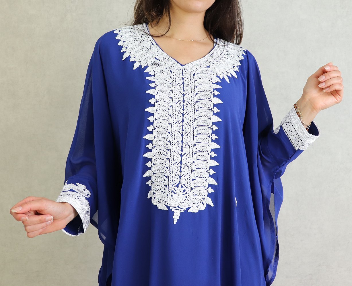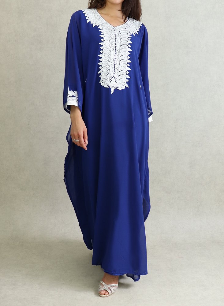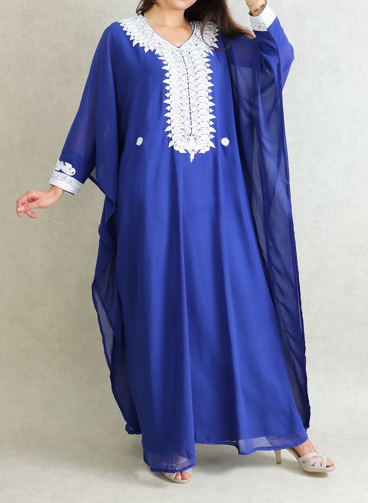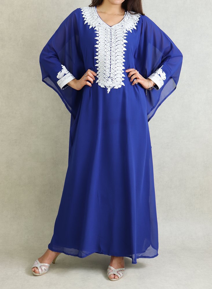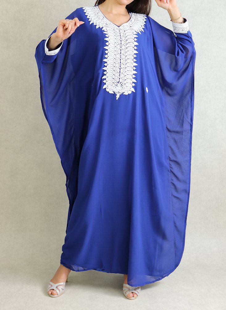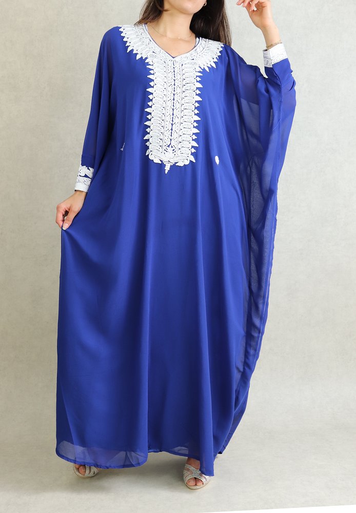 Robe tunisienne manches courtes avec broderies - Couleur Bleu roi - REF. 36062 (26.00 €)