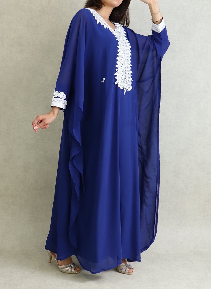 Robe de soirée orientale (2 pièces) pour femme avec effet papillon décorée de broderies et de strass - Couleur Bleu Roi Vetement & Accessoire