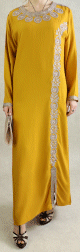 Robe orientale algérienne brodée et perlée pour femme - Couleur Jaune moutarde - REF. 33470 (28.00 €)