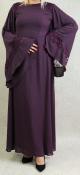 Magnifique robe de soirée orientale de couleur prune ornée de nombreuses broderies avec manches évasées - REF. 31011 (149.00 €)
