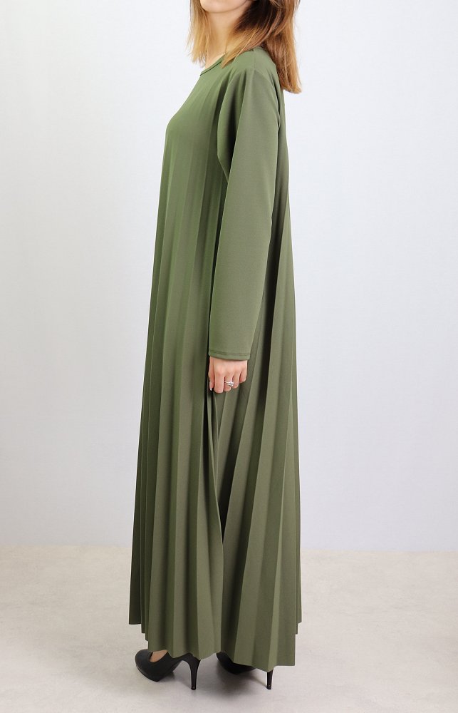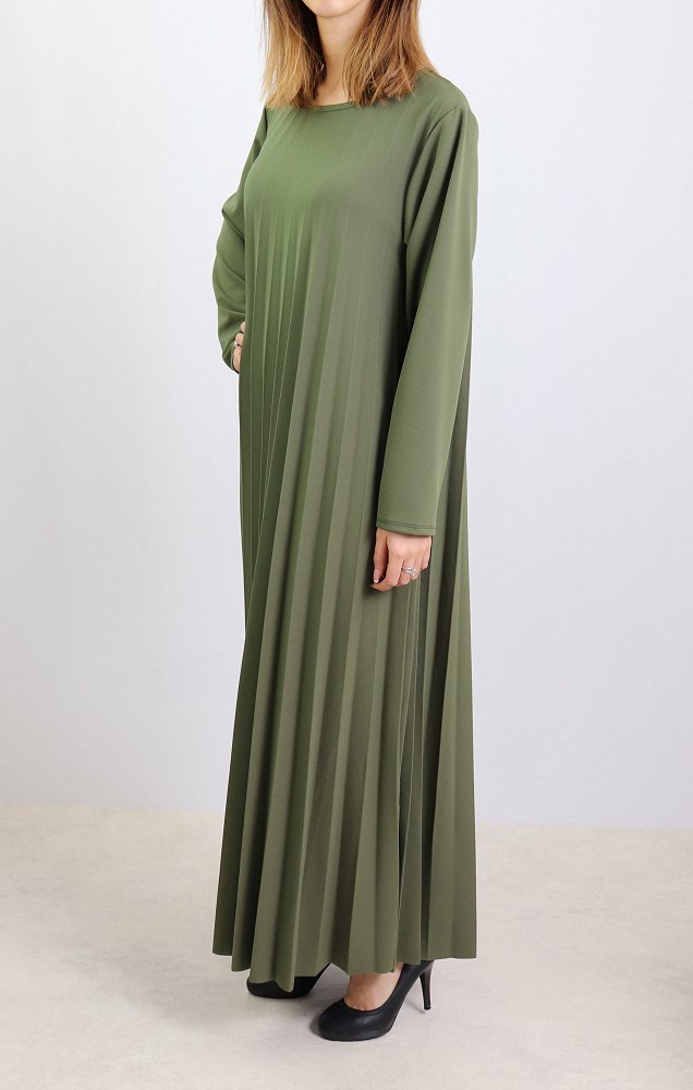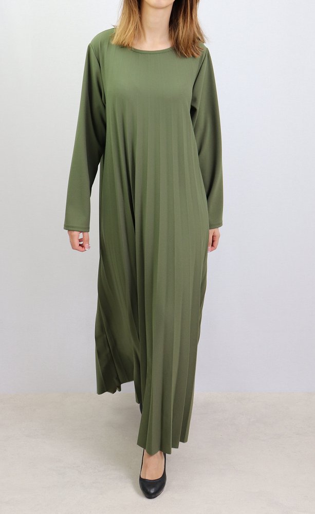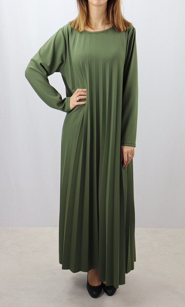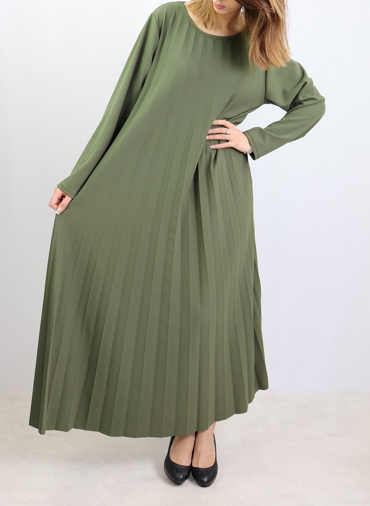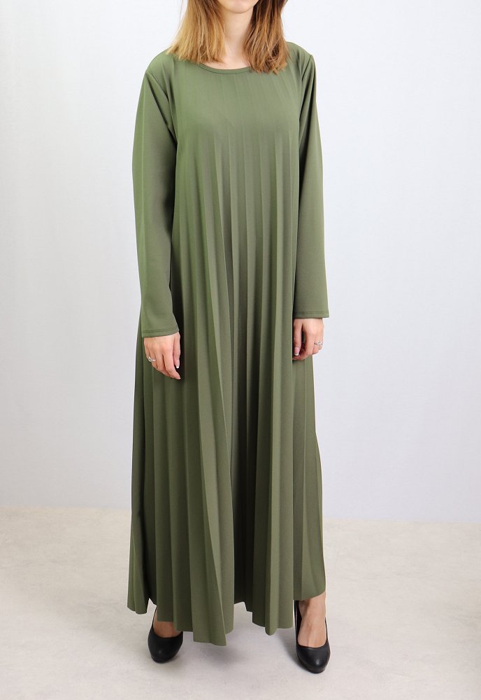 Robe longue plissee et evasee - Taille Standard - Couleur Kaki