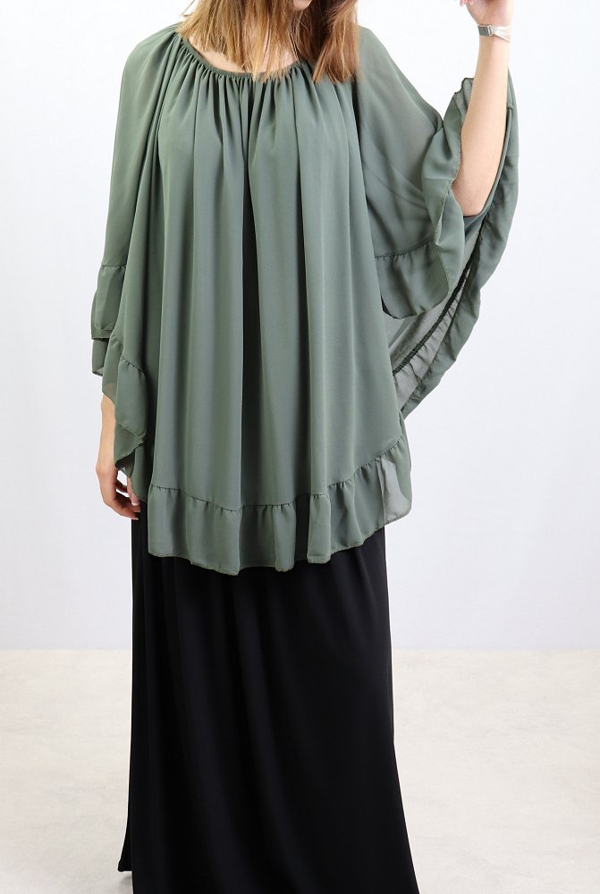 Tunique longue cintrée de couleur kaki (Vetement moderne style Turque pour femme) - REF. 30526 (19.00 €)