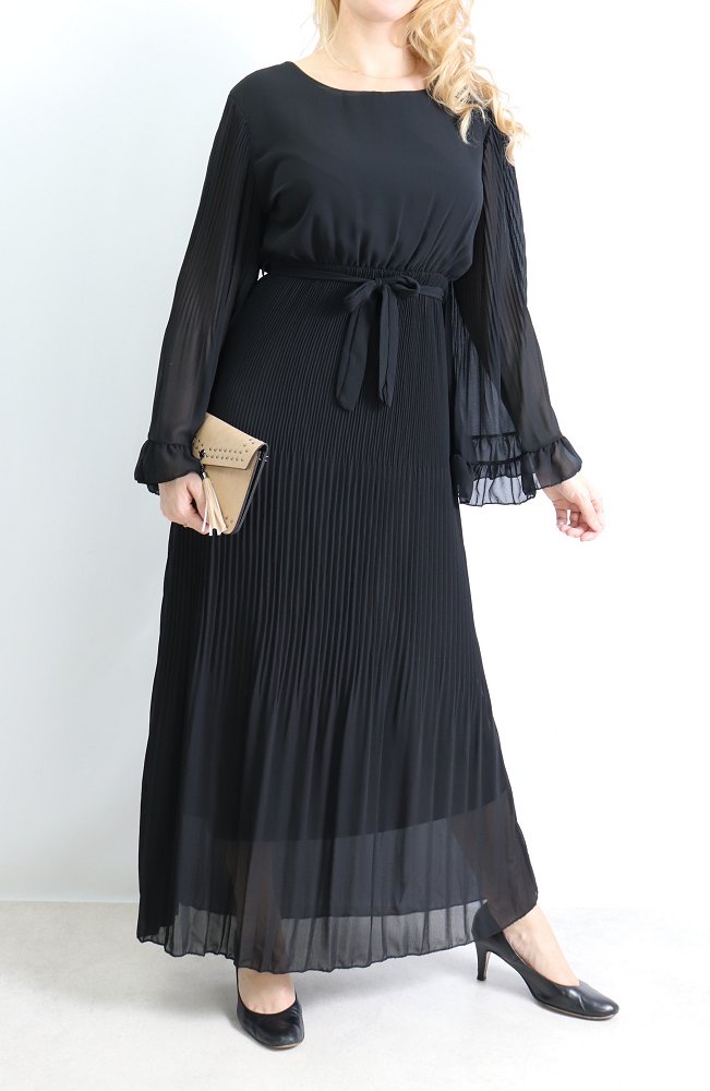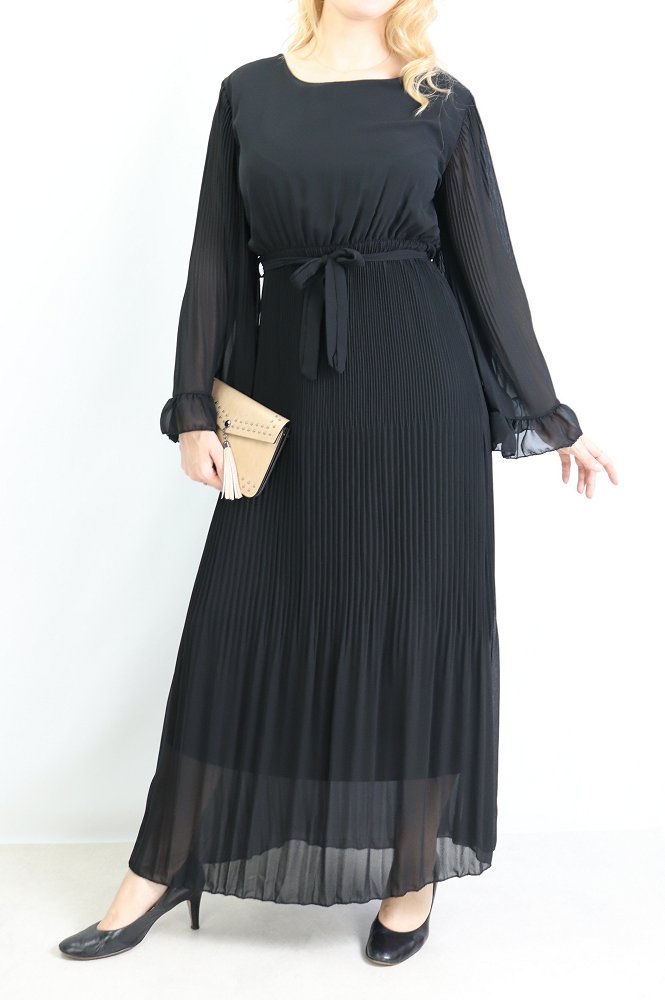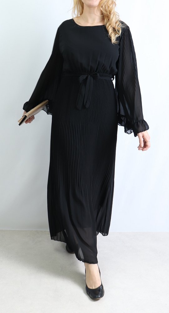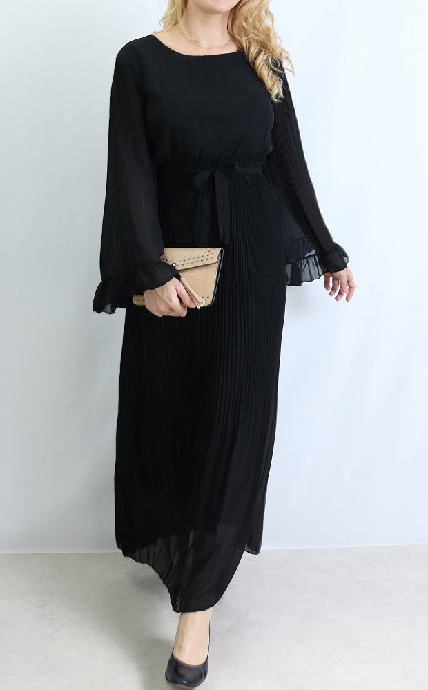 Robe longue plissée avec manches évasées - Taille Unique - Couleur Noir Vetement & Accessoire