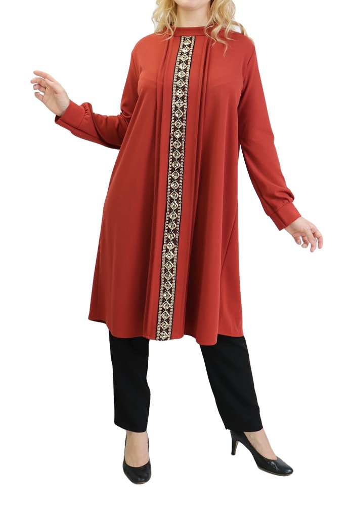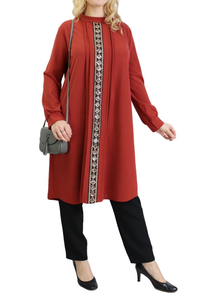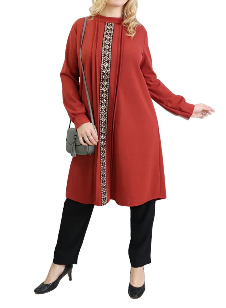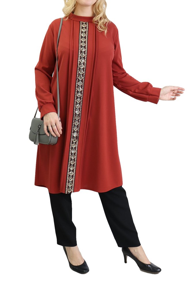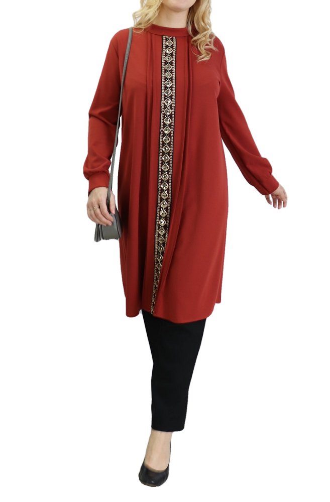 Tunique décontractée avec strass et capuche (Vêtement moderne pour jeune musulmane) - Couleur brique - REF. 35959 (19.90 €)