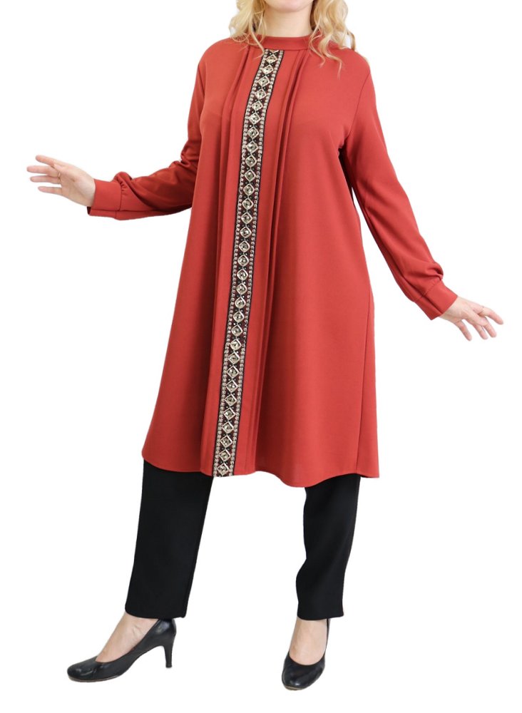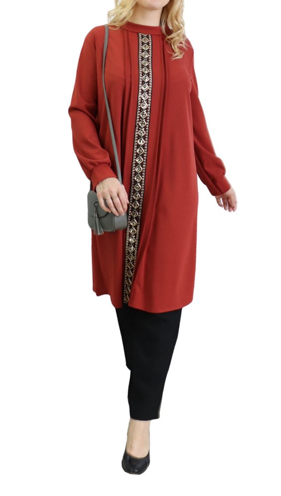 Tunique avec decoration doree pailletee - Taille Unique - Couleur Rouille