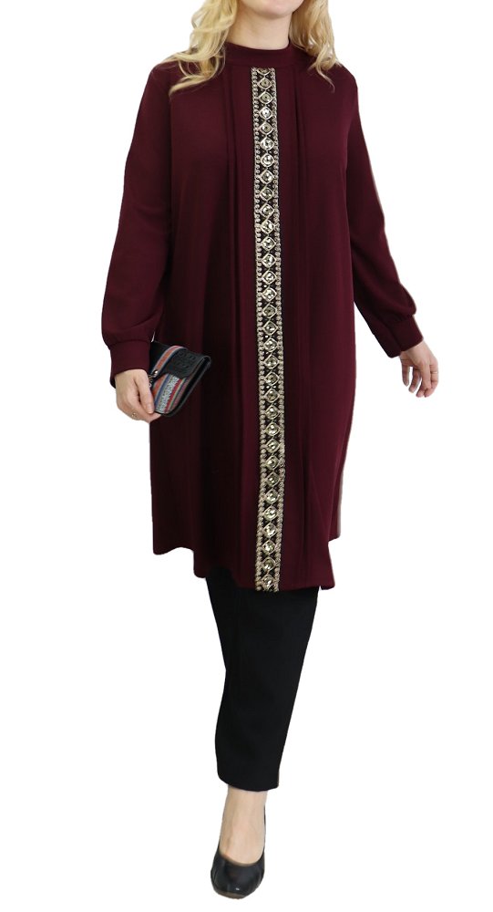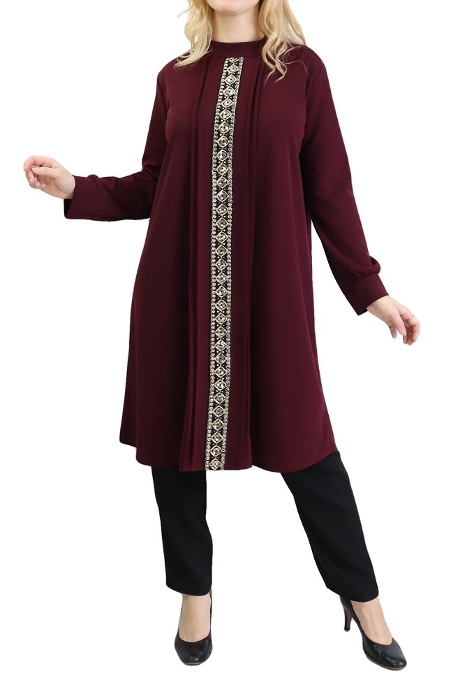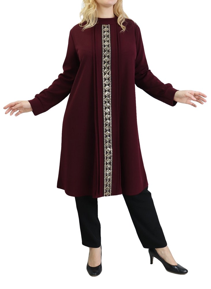 Tunique avec décoration dorée pailletée - Taille Unique - Couleur aubergine Vetement & Accessoire