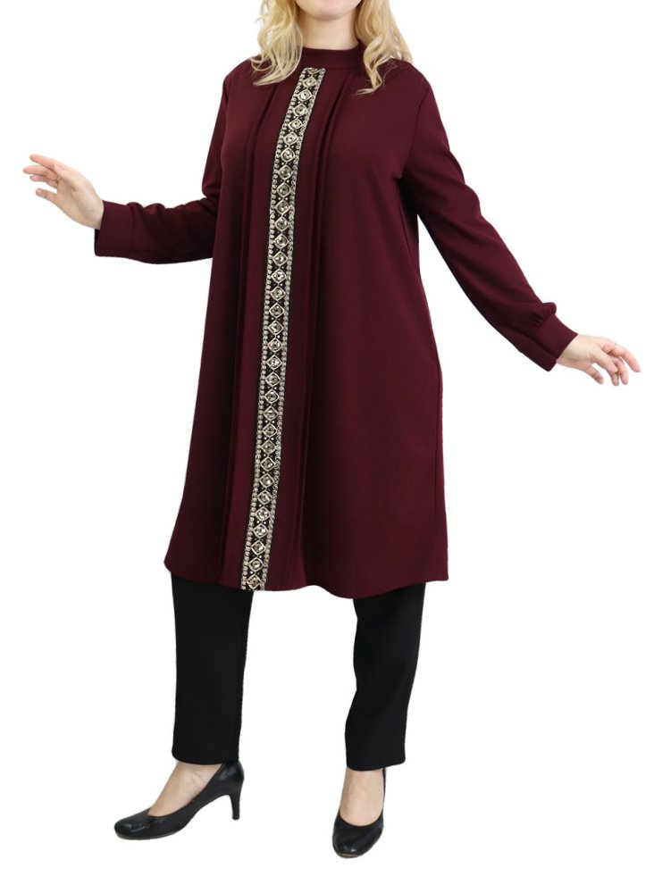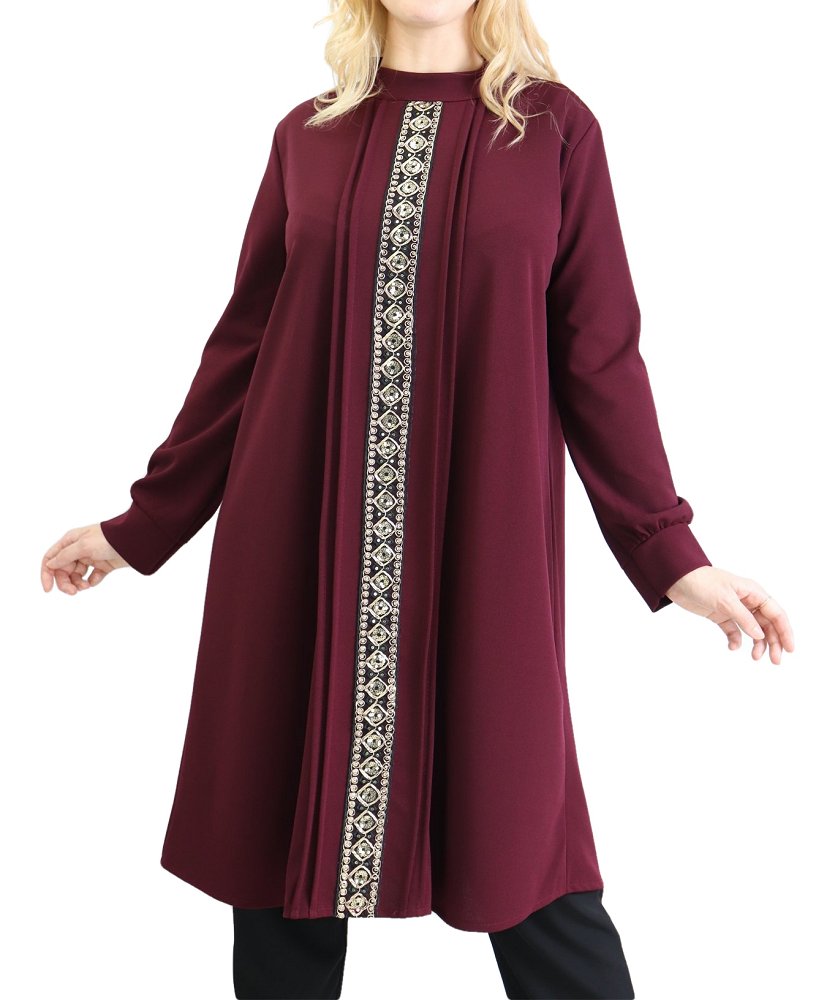 Tunique ample évasée boutonnée (Vetement style habillé pour femme voilée) - Couleur Rouge Bordeaux - REF. 33821 (22.00 €)