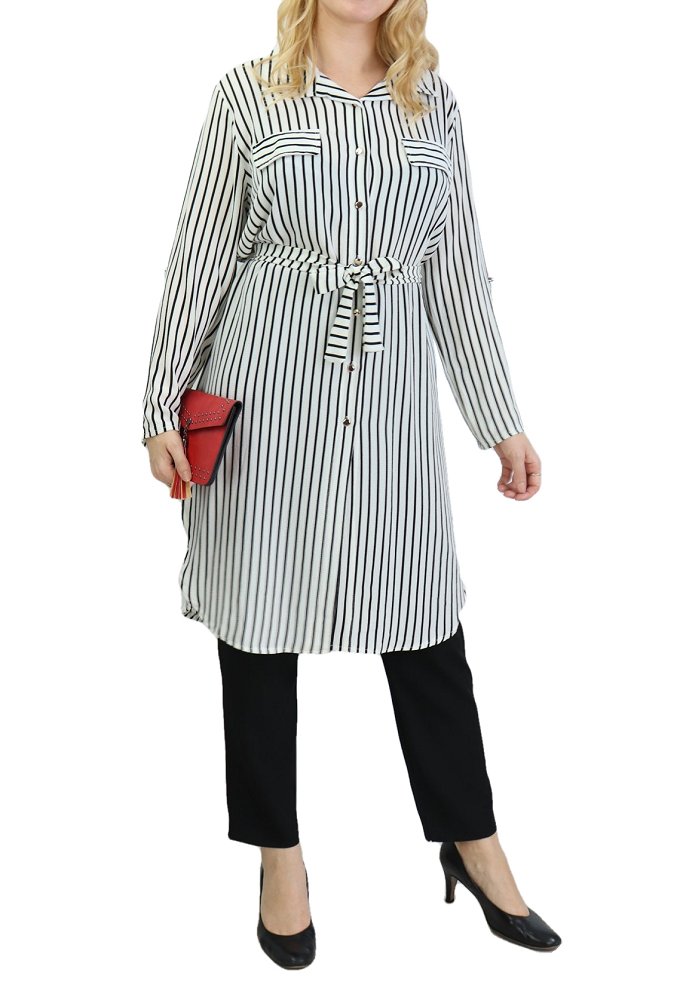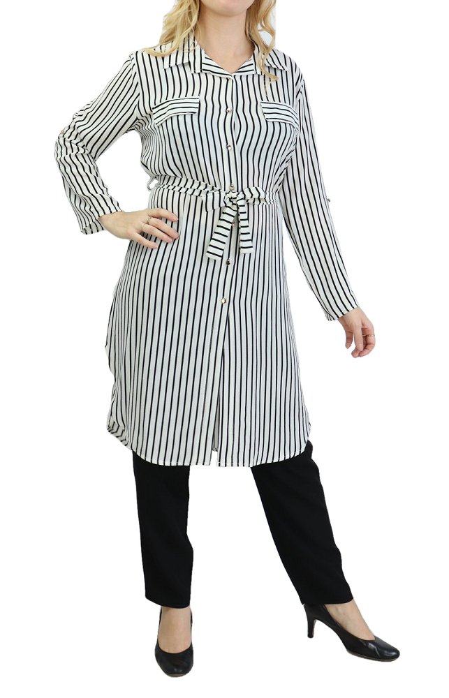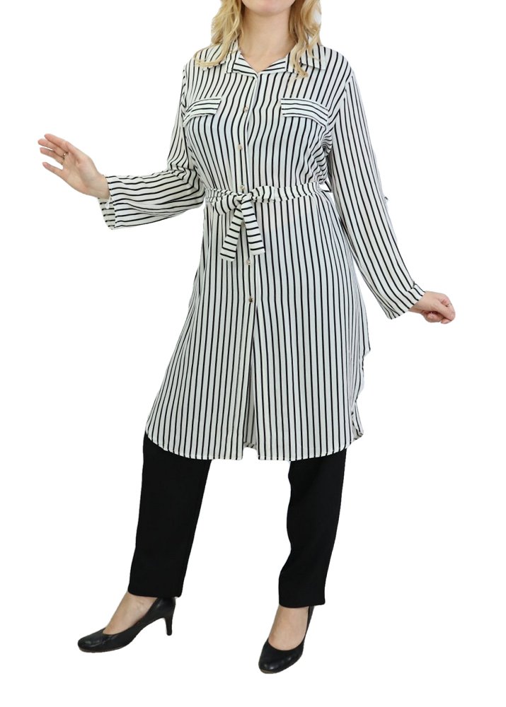 Chemise longue de couleur Blanche à rayures noires Vetement & Accessoire