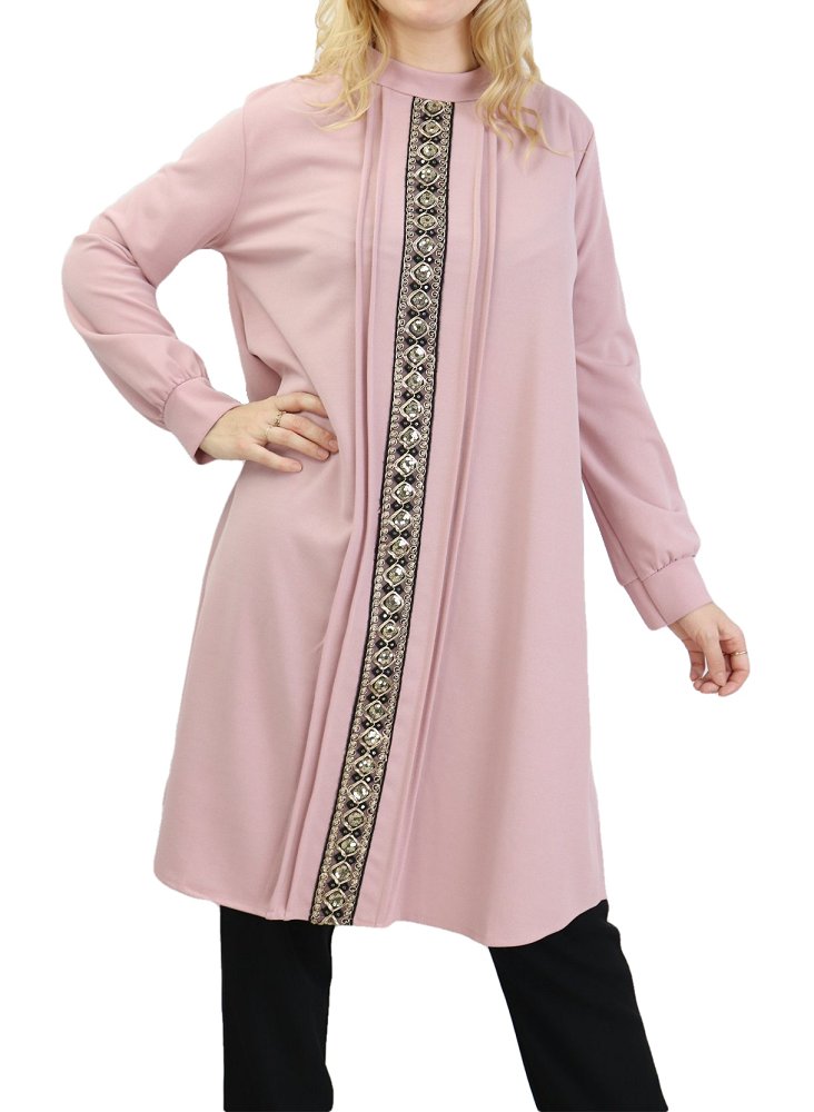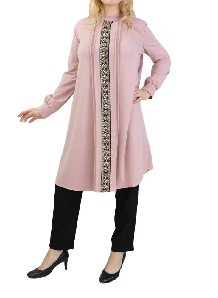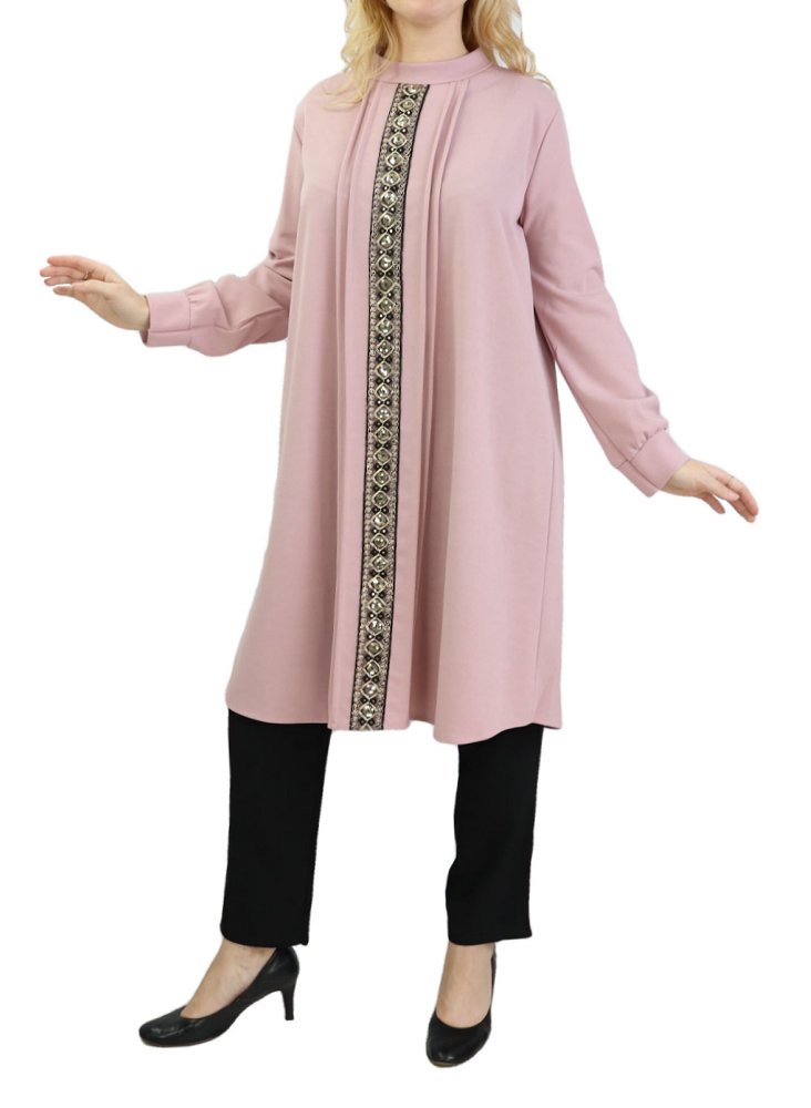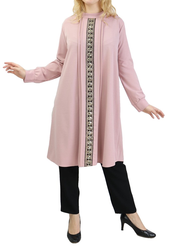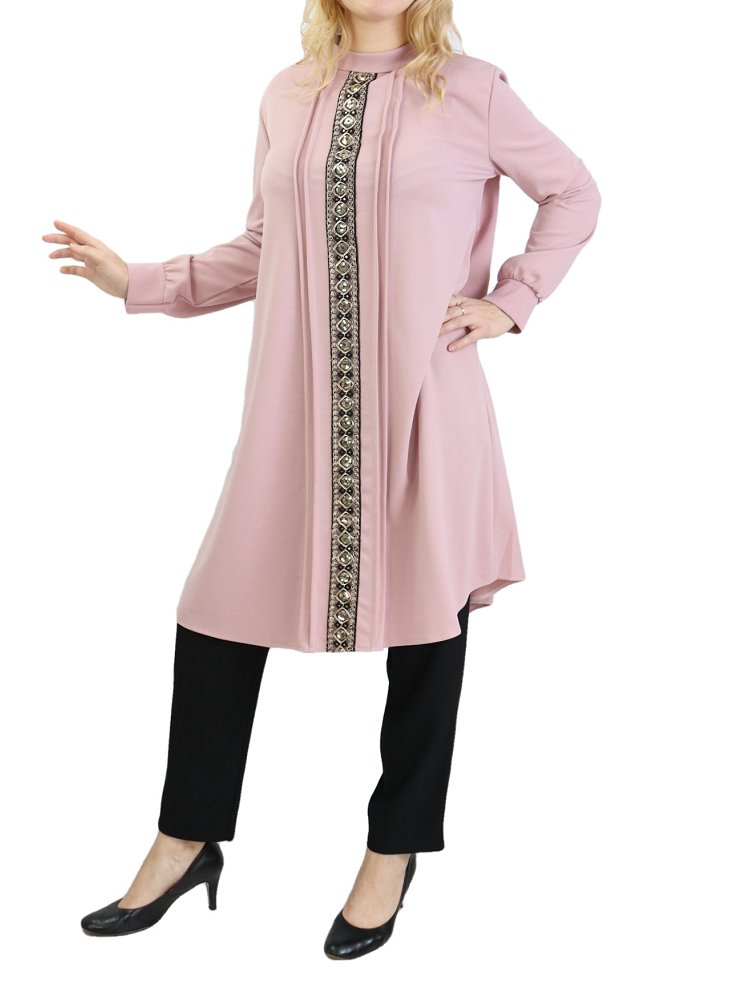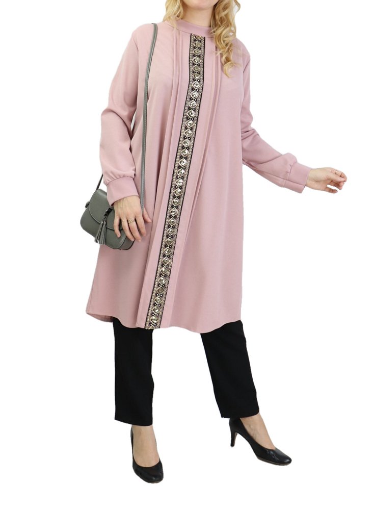 Tunique avec décoration dorée pailletée - Taille Unique - Couleur Vieux rose Vetement & Accessoire