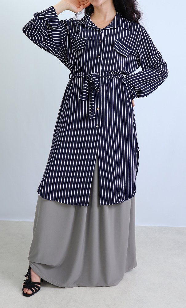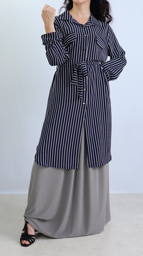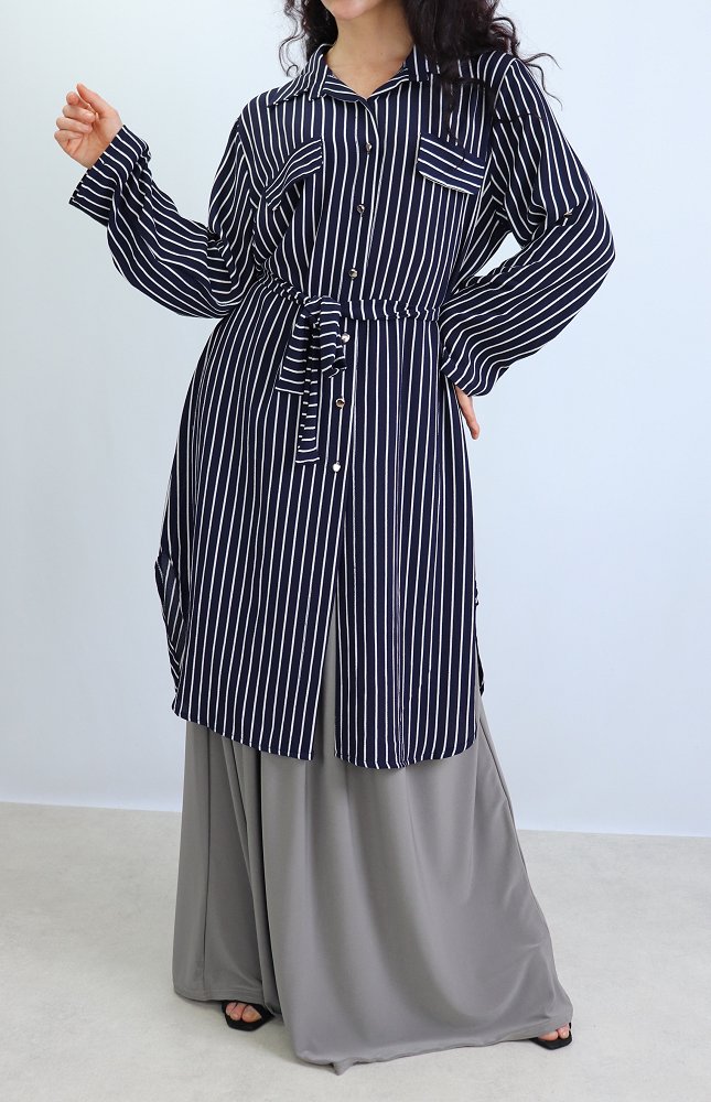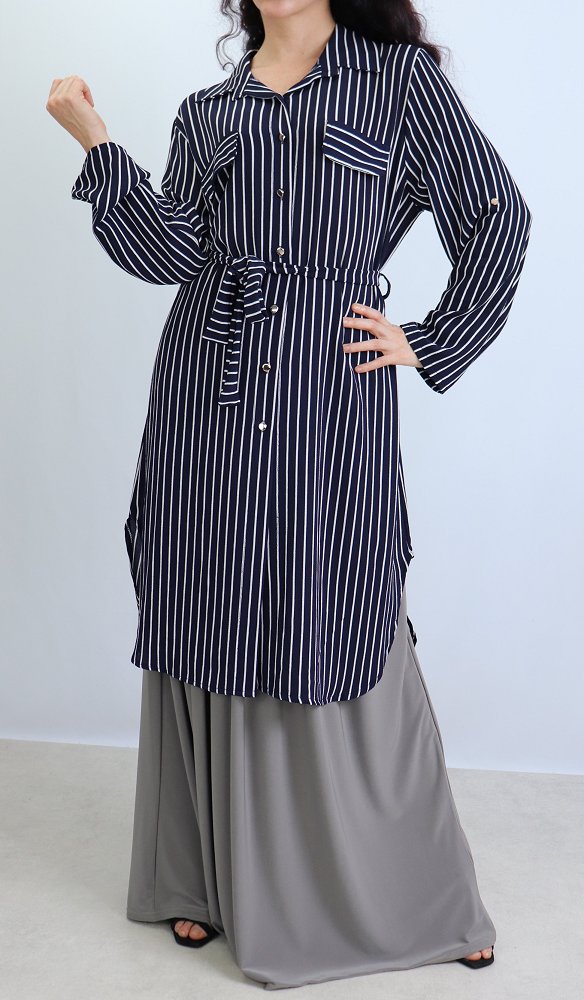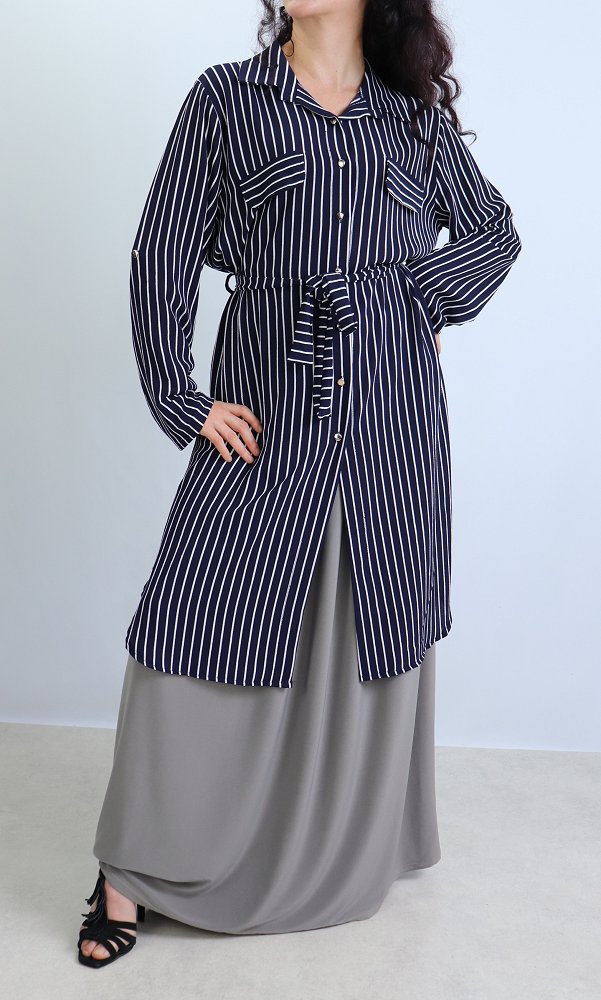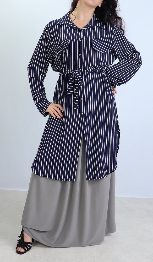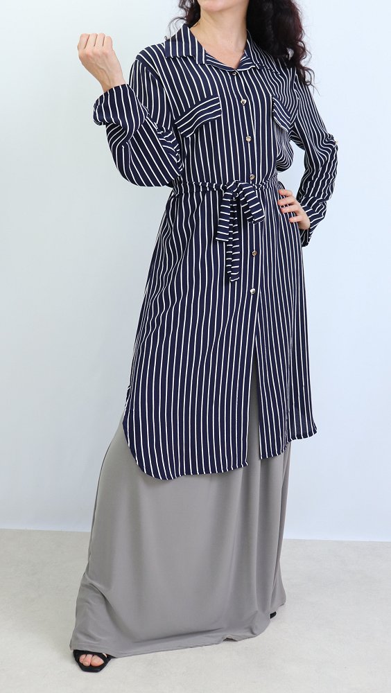 Chemise longue de couleur Bleu marine à rayures blanches Vetement & Accessoire