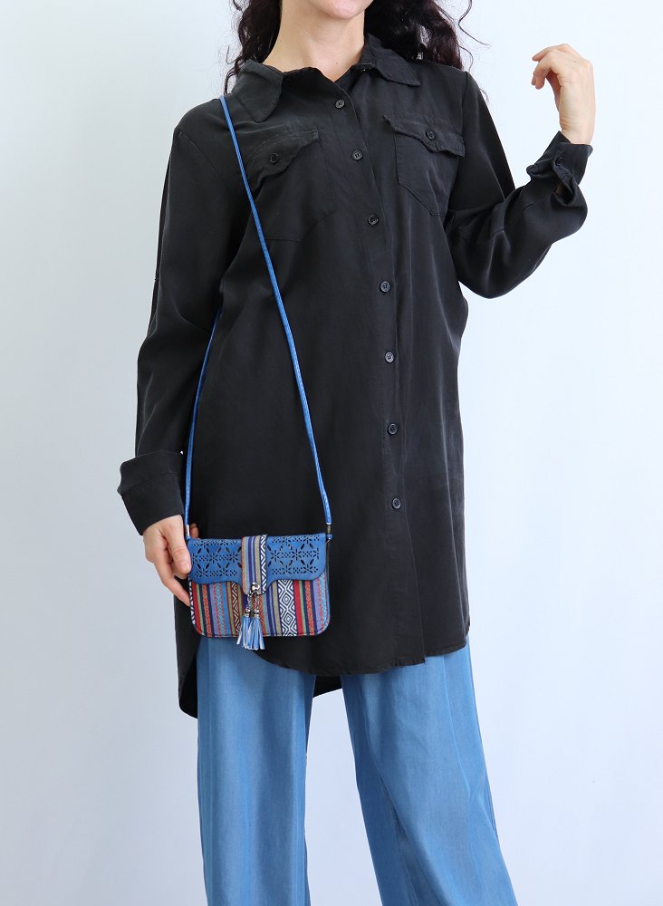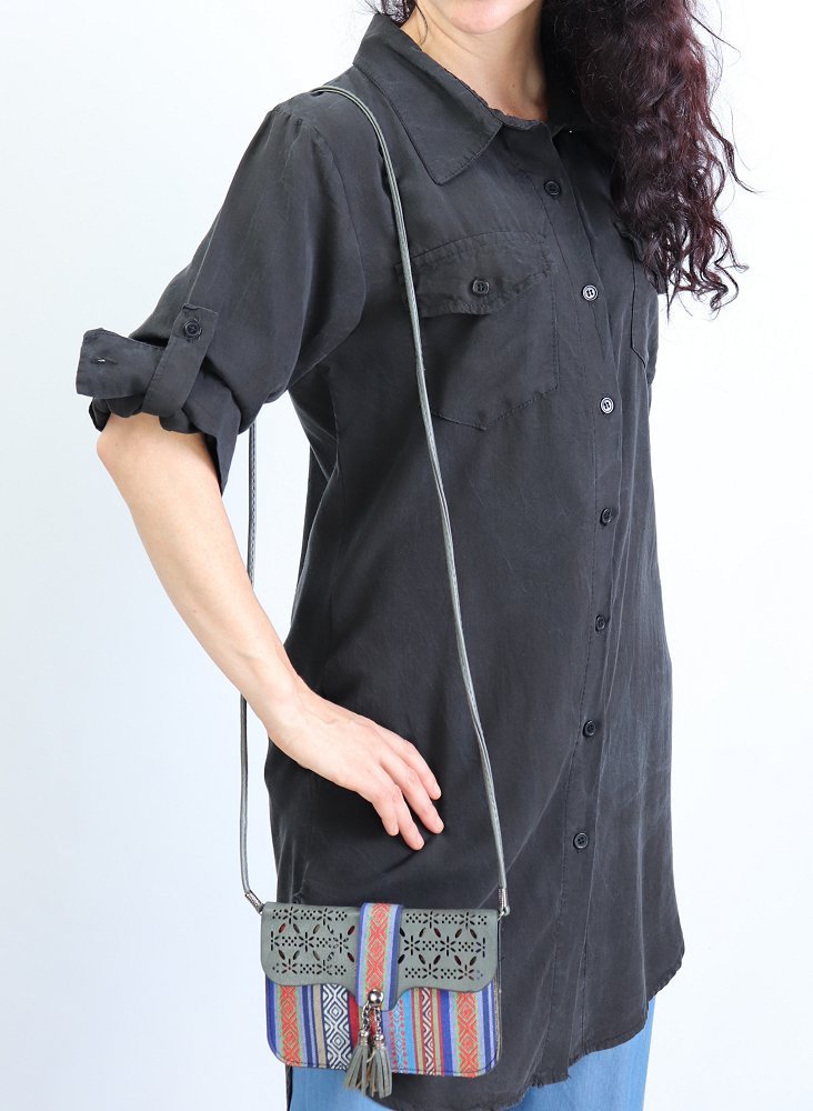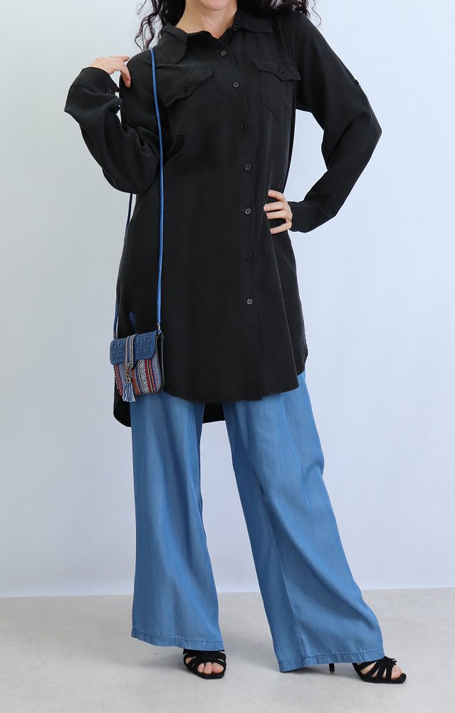 Chemise ample décontractée avec fermeture boutons et poches à rabat sur le devant, manches retroussables. Tissu très agréable à porter en toutes saisons.