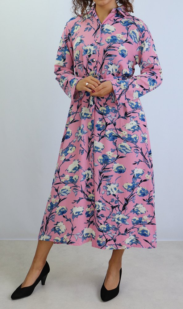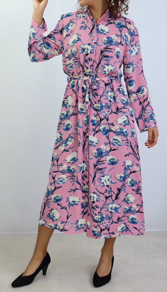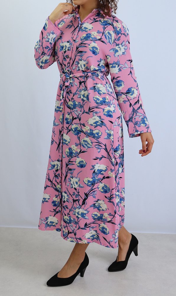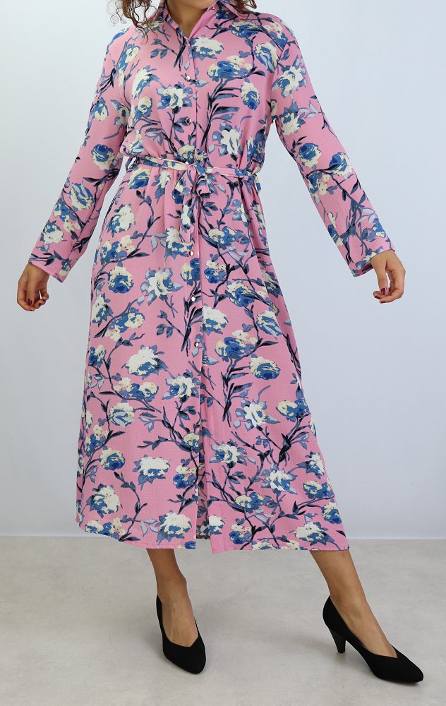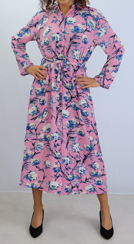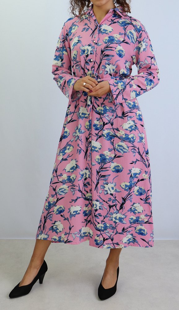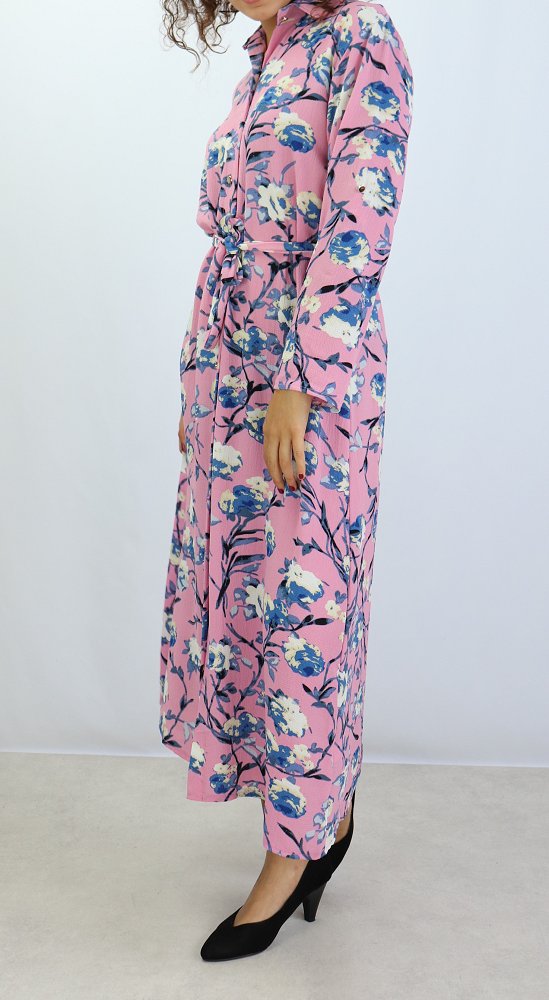 Robe longue "Maxi Dress" avec col chemise, ouverture à boutons sur tout le long, manches longues, accompagnée d'une ceinture à nouer sous passants à la taille. Elégante et féminine, cette robe se porte en toutes occasions.