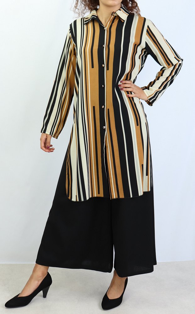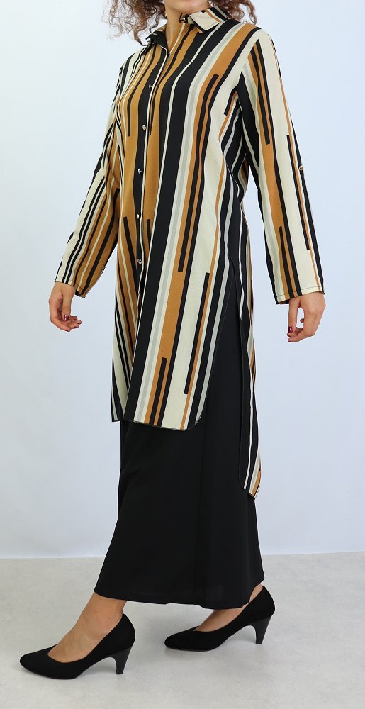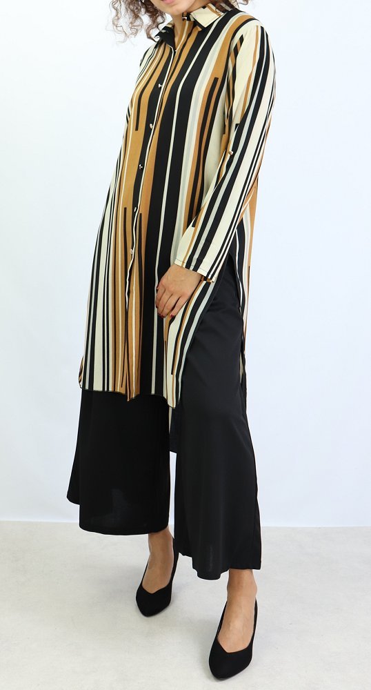 Chemise longue a manches a rayures - Plusieurs couleurs disponibles