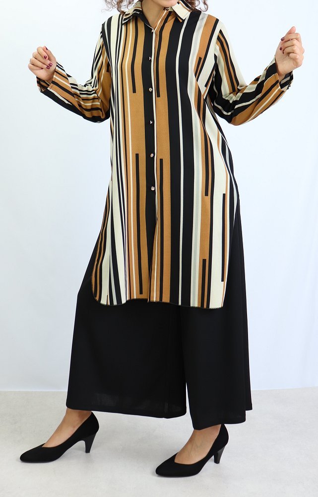 Ensemble décontracté tunique à rayures et son pantalon assorti - Couleur noir - REF. 37155 (28.00 €)