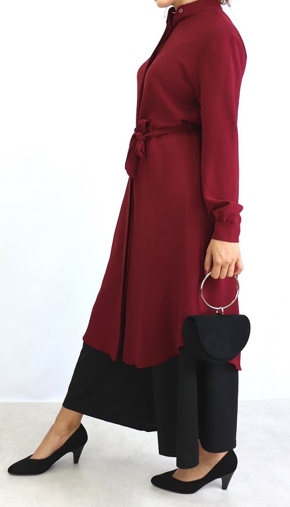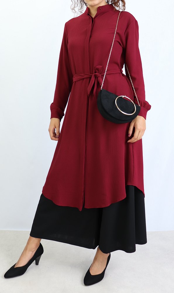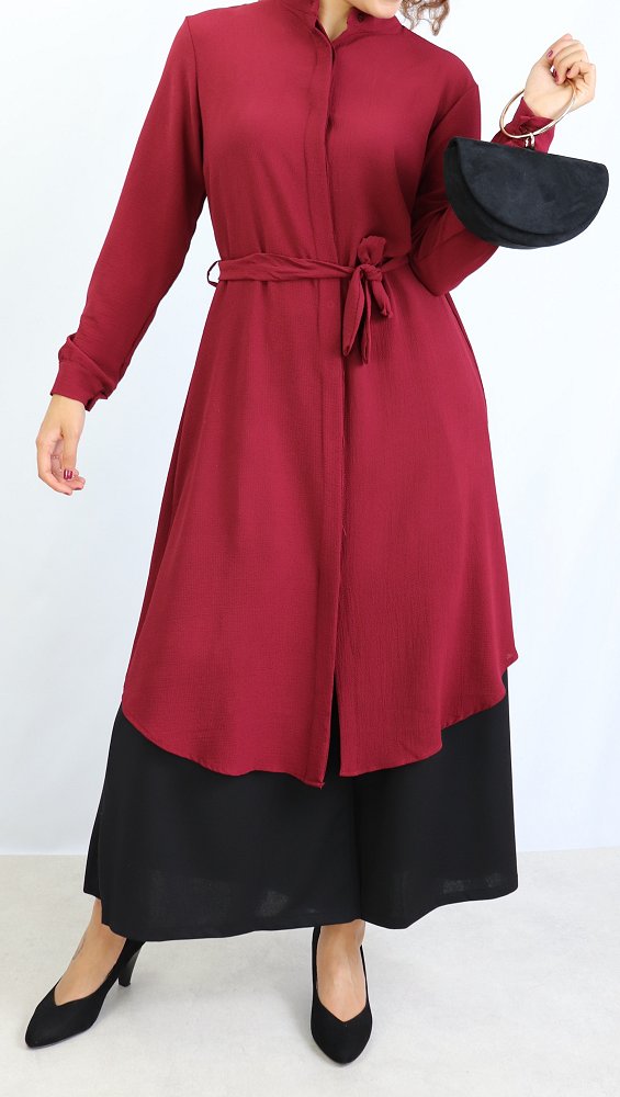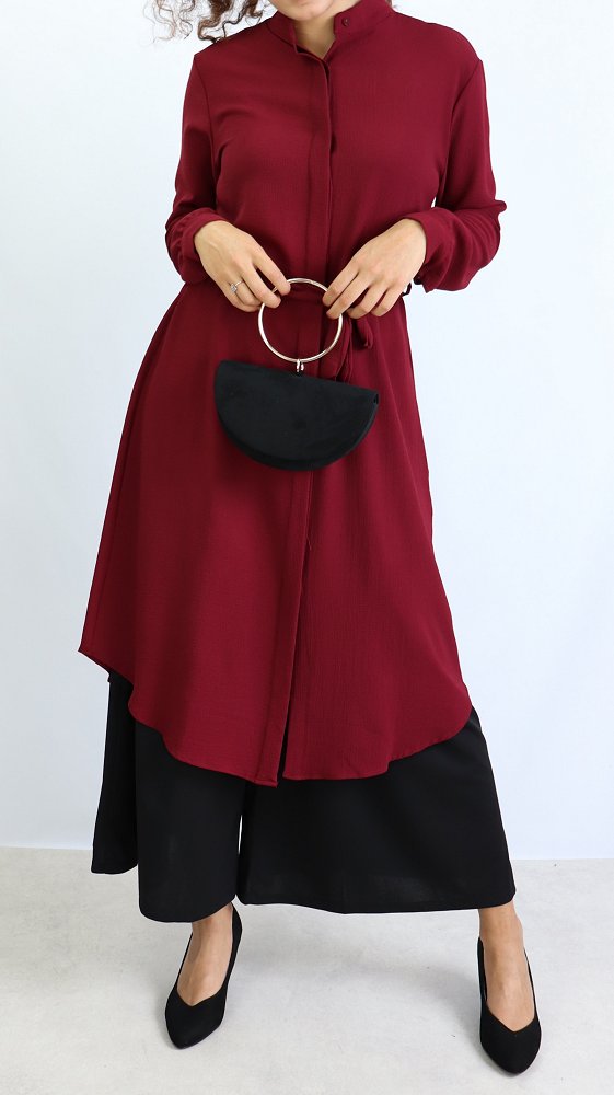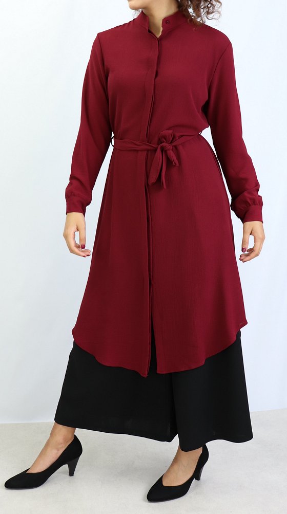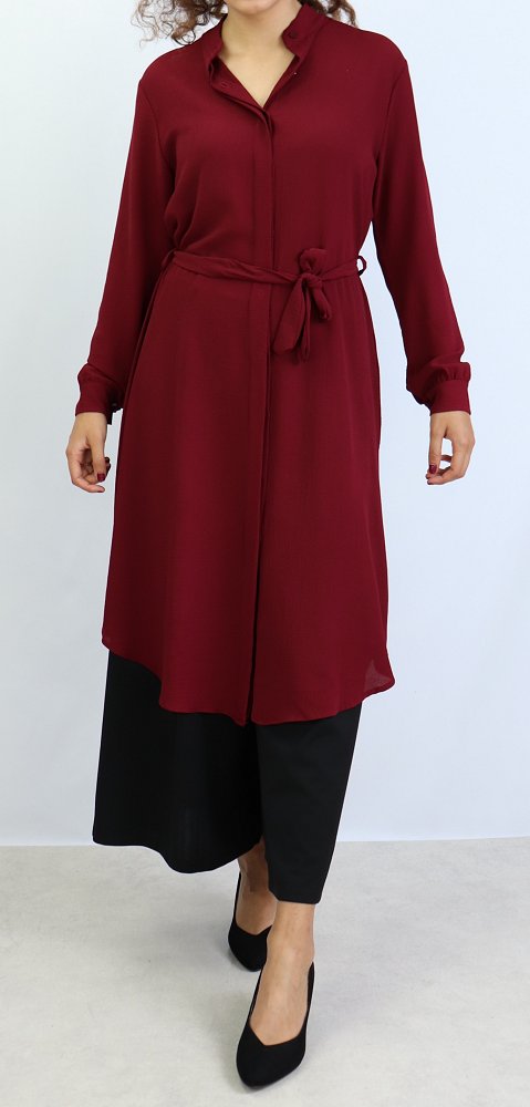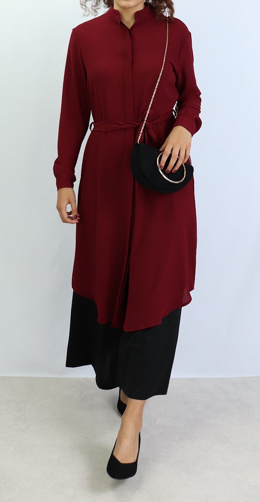 Chemise tunique longue avec ceinture couleur bordeaux Vetement & Accessoire