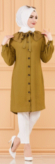 Tunique chemise boutonnée habillée (Vêtement pour femme voilée) - Couleur kaki - REF. 36344 (29.00 €)