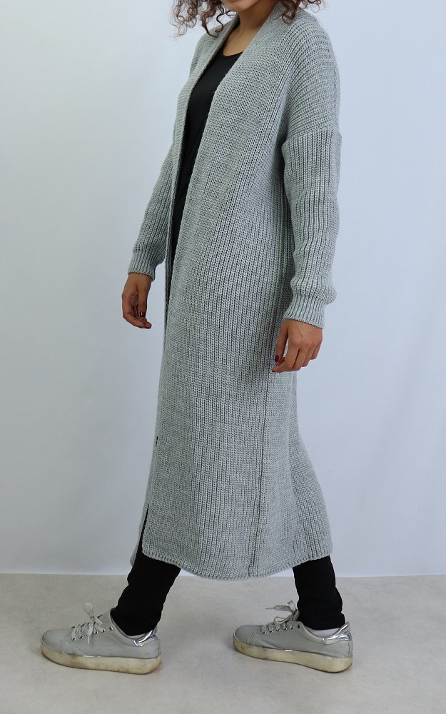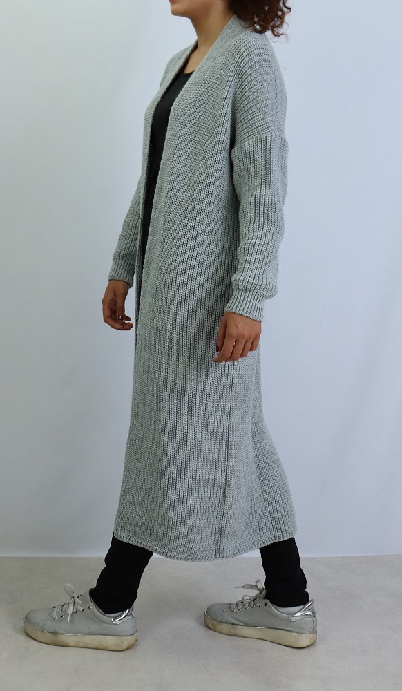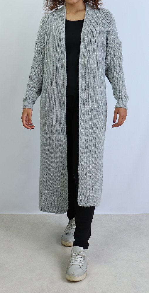 Long gilet en maille, manches longues, sans fermeture, idéal pour réchauffer votre look.