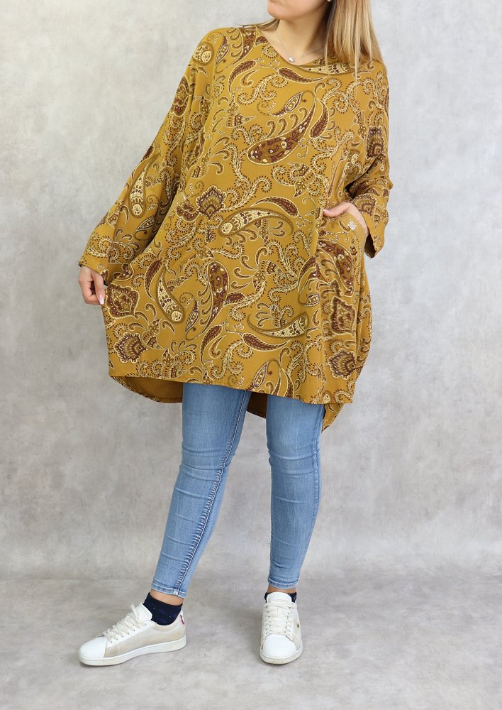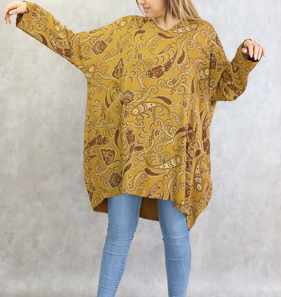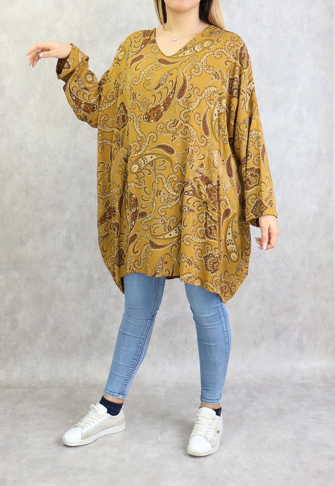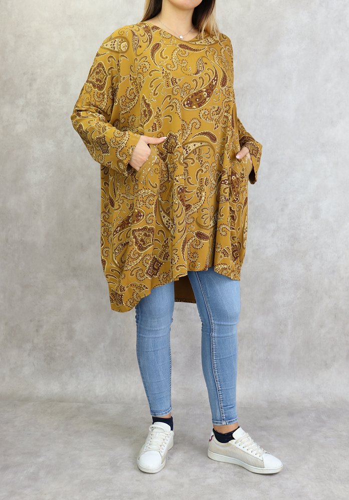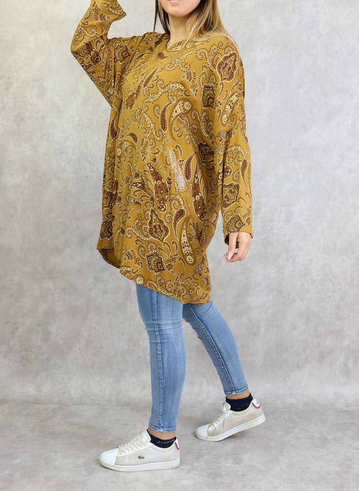 Tunique originale s'adaptant à toutes les morphologies, imprimée de motifs cachemire rappelant les tenues indiennes.