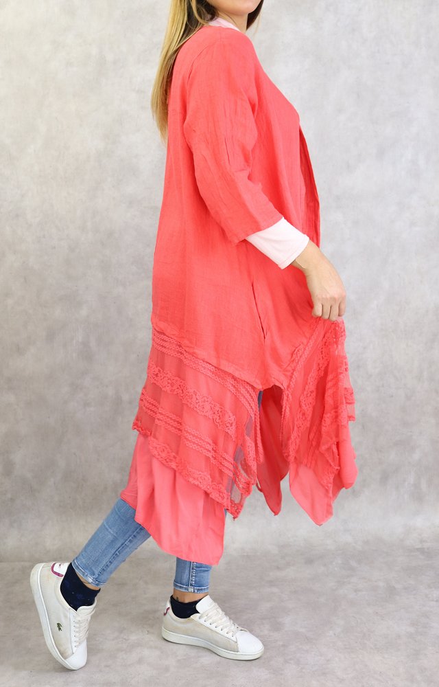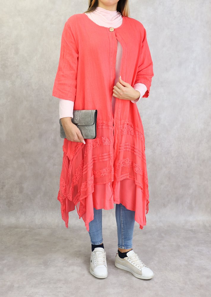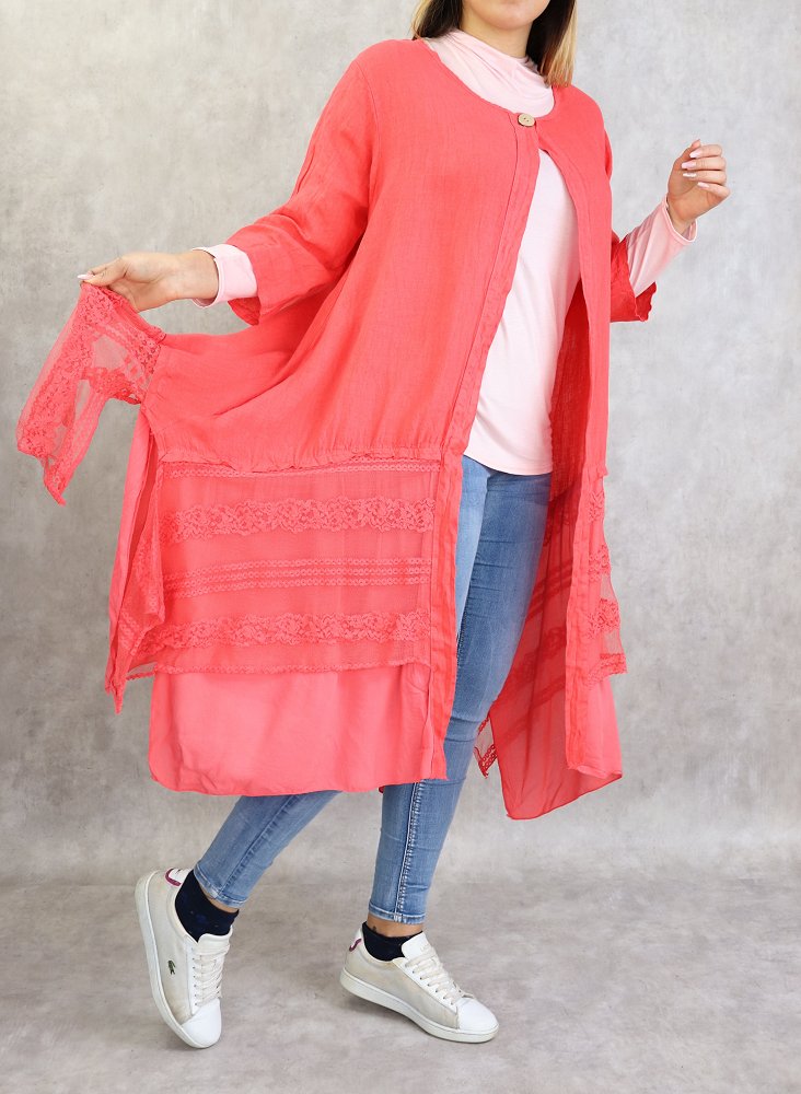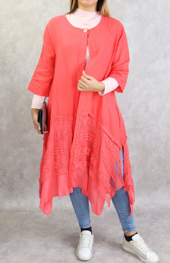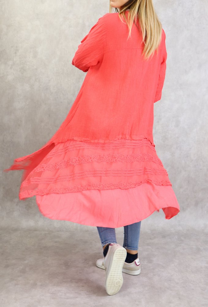 Veste-Tunique longue et évasée pour femme - Couleur rose corail Vetement & Accessoire