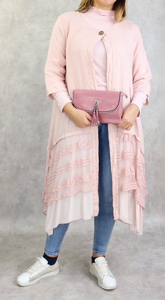 Veste-Tunique longue et evasee pour femme - Couleur rose clair