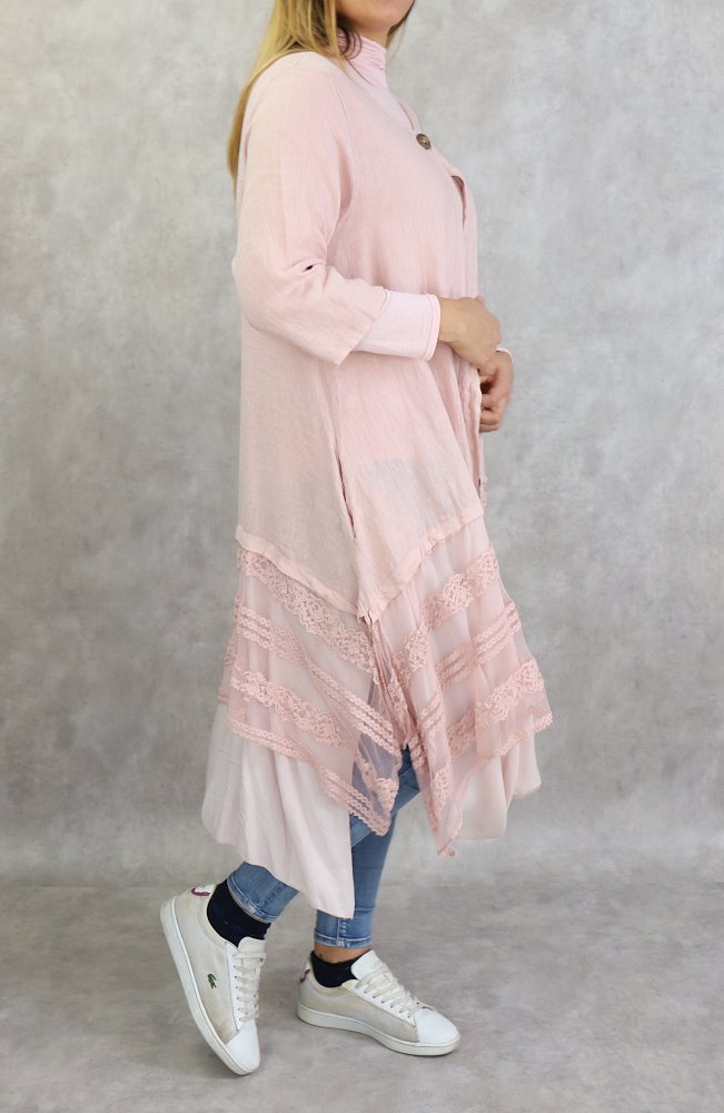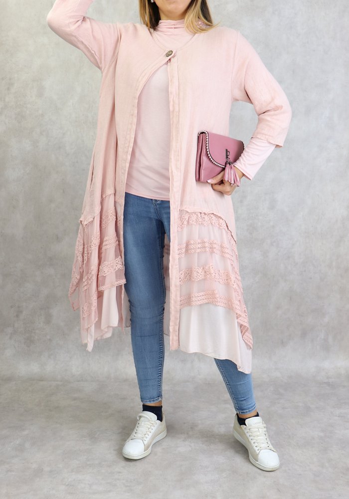Veste-Tunique longue et évasée pour femme - Couleur rose clair Vetement & Accessoire
