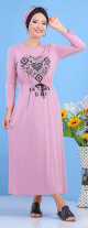 Robe longue brodée style oriental manche courte pour femme - Couleur Rose - REF. 33014 (25.00 €)