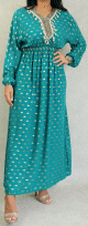 Robe orientale longue avec belles broderies en coton pour femme - Couleur Vert émeraude - REF. 33560 (25.00 €)