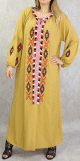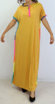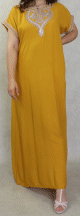 Gandoura / Robe marocaine manches courtes avec décorations - Couleur Jaune moutarde - Fabriqué au Maroc - REF. 30890 (38.00 €)