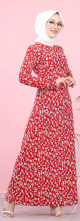 Robe longue évasée à motifs fleurs (Vente en ligne vetement femme musulmane) - Couleur rouge - REF. 32782 (28.00 €)